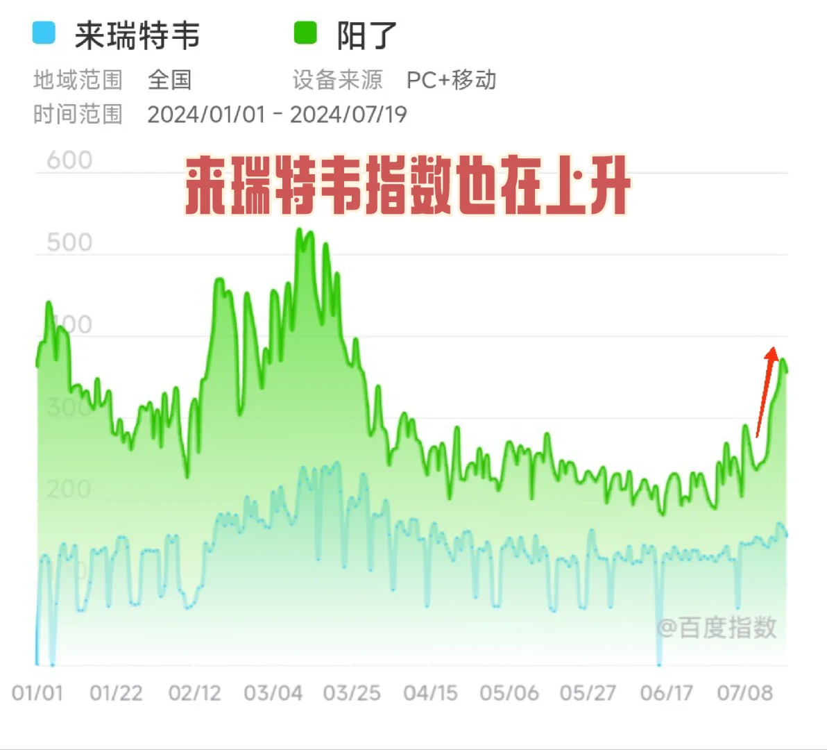 [皱眉R]某度指数,阳了,paxlovid,来瑞特韦的指数都上来了,直追3月份那波小高峰。就是先诺欣的指数好乱,没有指向性[失望R],然后民得维搜的更少,没有存在感。
