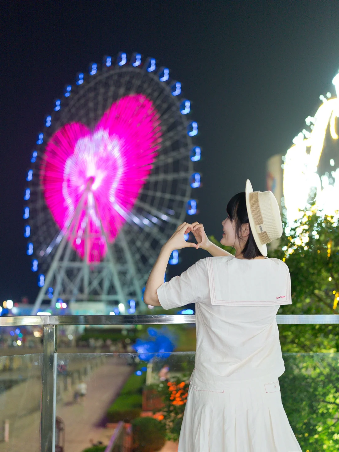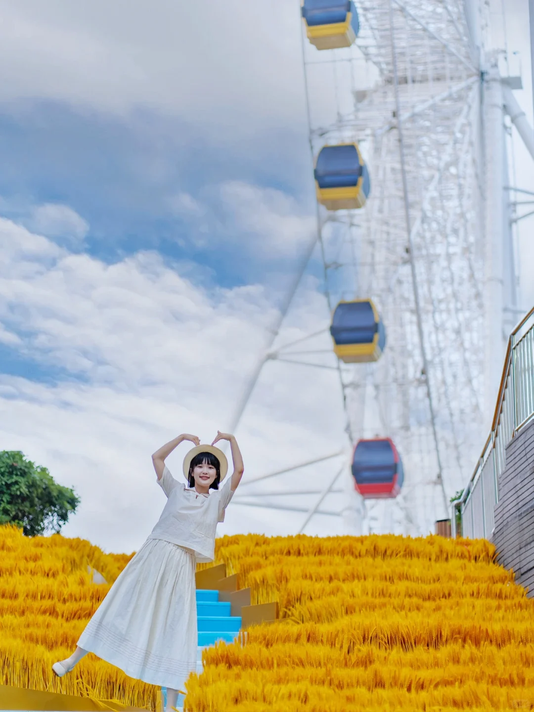 青岛新晋免费地标打卡地诞生了‼ “蓝天白云”里大大的“青岛” 真的太太太好拍了‼ · 还有海边摩天轮旁边的麦浪印记步道 海风吹过好像闻得到淡淡的麦香🍃 · 一些拍照点分享: 麦浪印记步道——在摩天轮下面 青岛印记步梯——中央广场 晚上天黑的时候 可以看摩天轮灯光秀 和繁花启梦落日灯光秀 走到二层的观景平台可以拍到与摩天轮同框 · 建议大家下午的时候打卡 当夜幕降临灯光秀亮起真的超级浪漫! ·