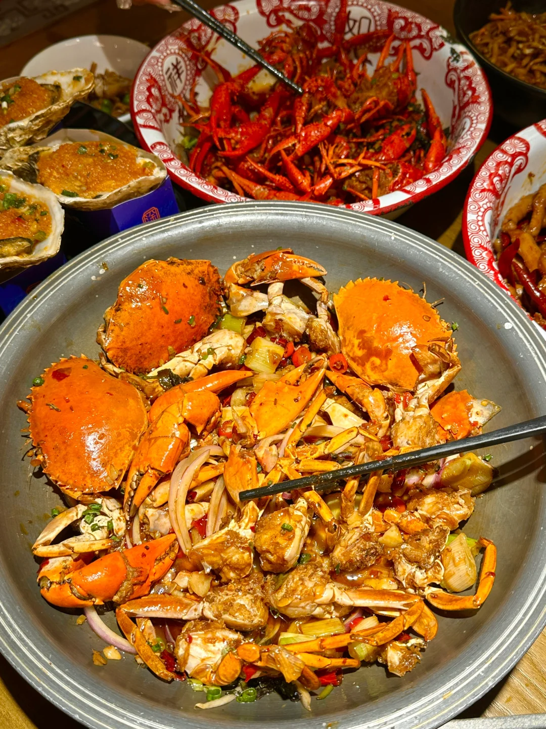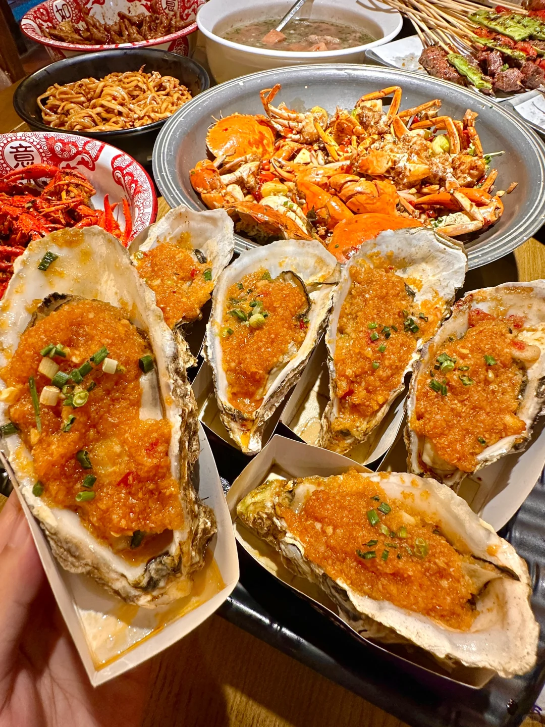 求求了…来长沙不要再排队市中心的网红夜宵了!长沙老口子们扎堆在吃的店难道不香吗😭?! 就开在本地人居民楼下!(叫:涂.小二)真心平价又好吃啊!! 口味虾!香辣蟹!真的每次来都要吃的…老板用料都很好,虾子螃蟹个头都大,肉质饱满又嫩… 生蚝也很不错🥹很肥美,蒜香浓郁好吃到一个人炫整盘!
