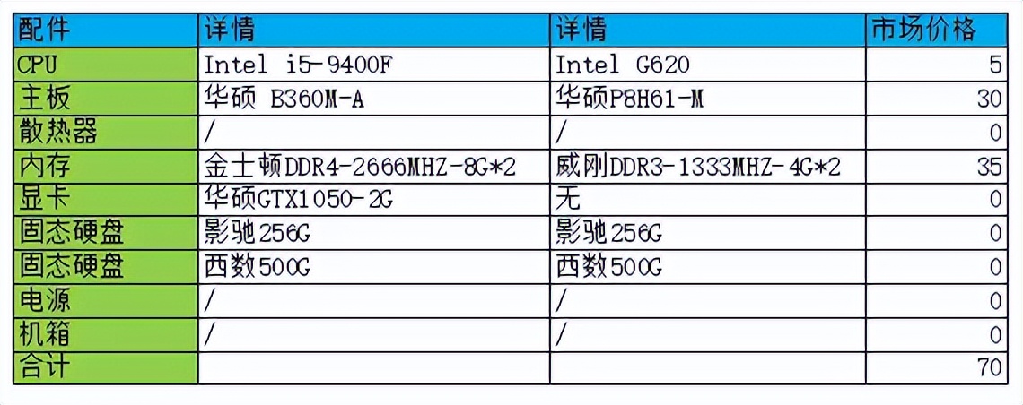 最终降级方案就是:上我找到的这套板U内存,显卡直接卸掉,剩下的机箱、电源、硬盘、散热器都用原来的。