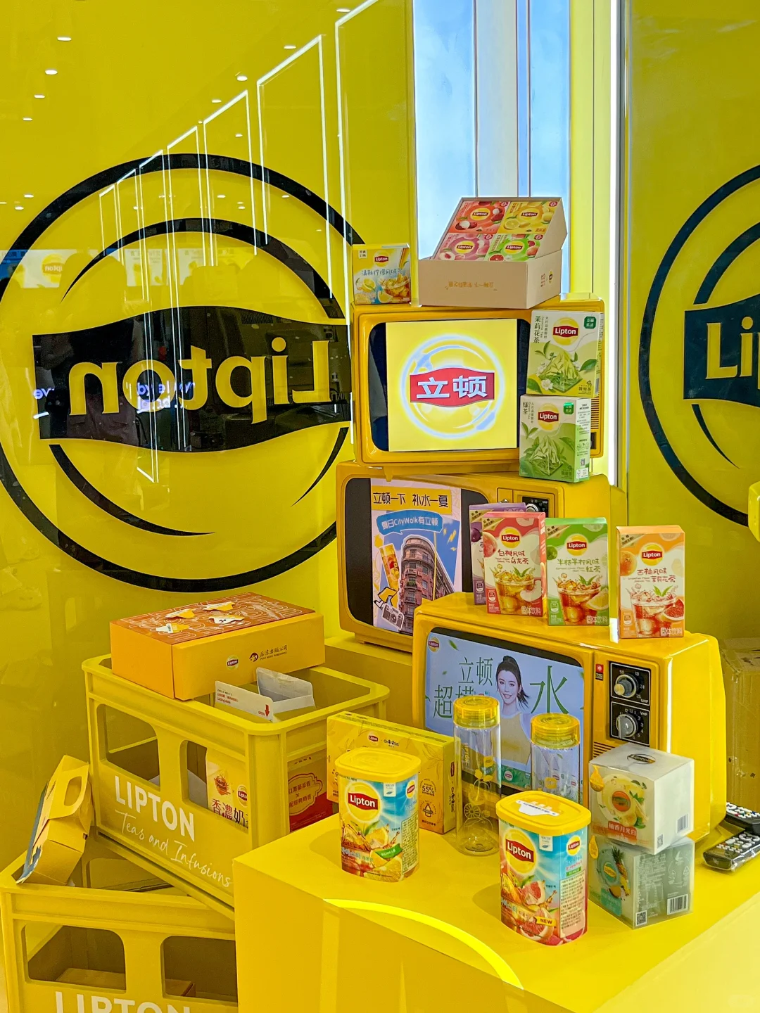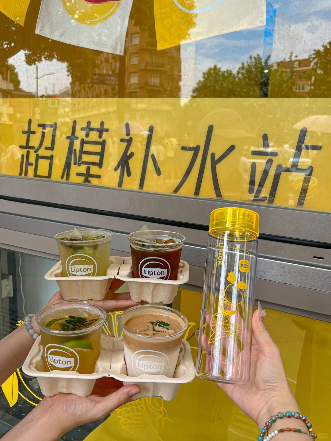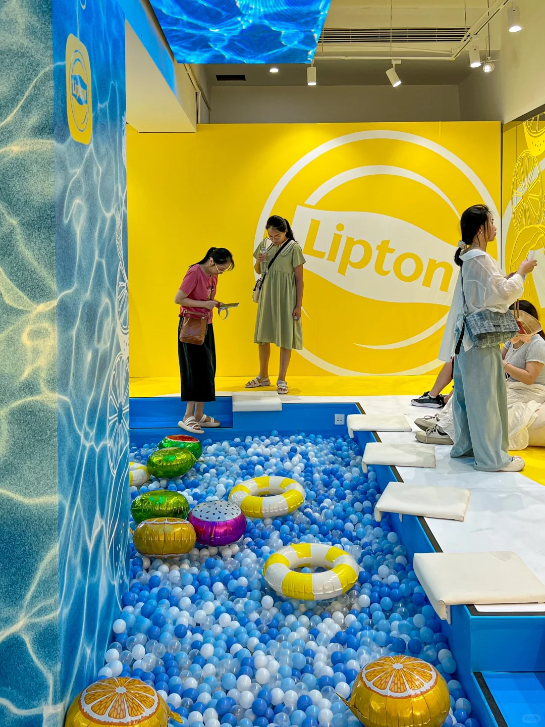 立顿柠檬黄主题的补水站,超大落地镜、夏日海洋球池🌊