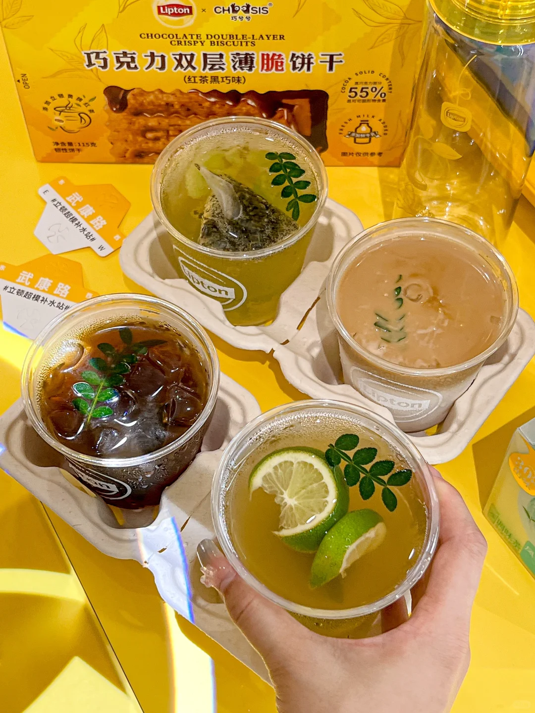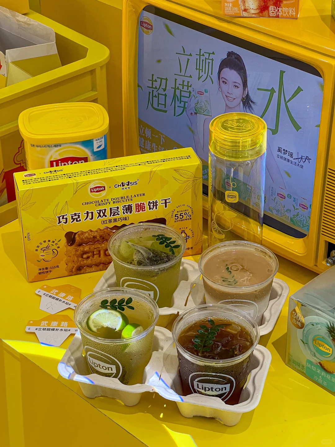 喝超模水的同时,还可以搭配立顿联名的巧兮兮红茶黑巧饼干🍪