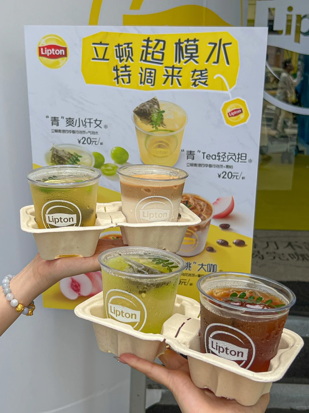 现场还有立顿超模水售卖,一共有4款,都是20r一杯~
