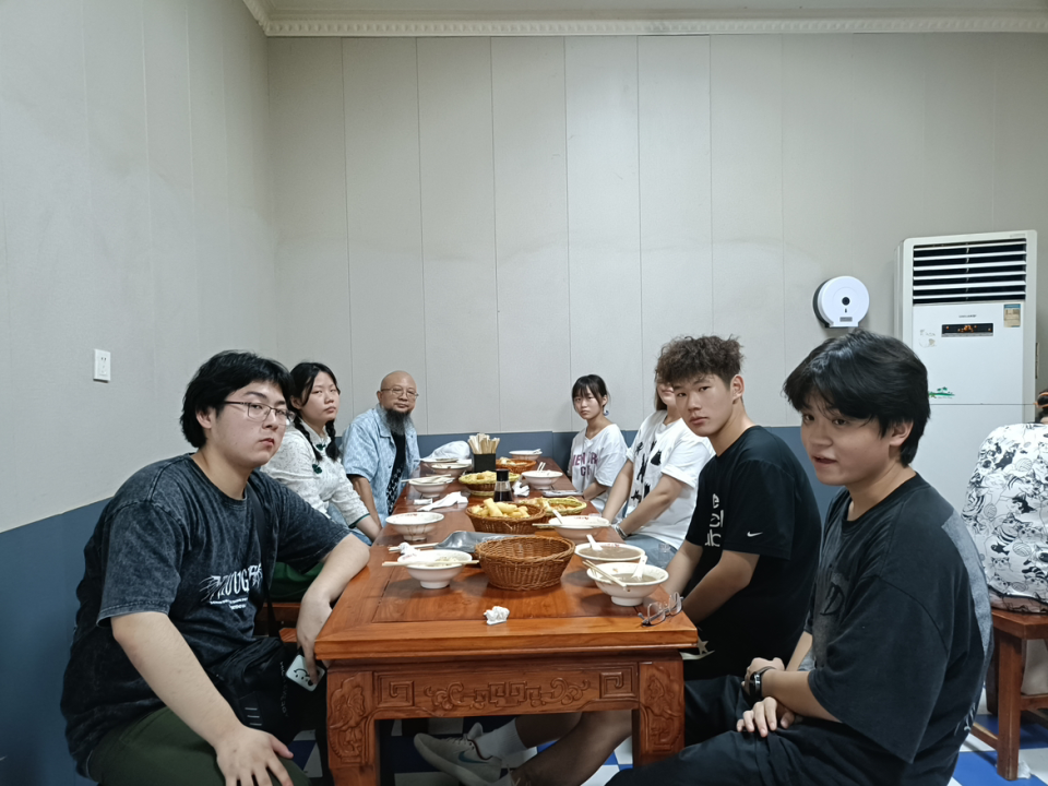 而我们今天的志愿者们展现出了极高的热情。他们与老人亲切交流,关心地询问他的身体状况和生活情况,细致入微,充满关爱。现场氛围融洽,温馨而欢乐。部分志愿者们陪伴在老人身边,与他们畅谈生活琐事,耐心倾听老人的故事和心声,让他们感受到了关怀和温暖;另一部分志愿者则与老人在棋盘上对弈。老人被志愿者们的热情和关怀所感动,脸上洋溢着幸福的笑容。老人还给我们介绍当地特色美食胡辣汤让我们品尝。