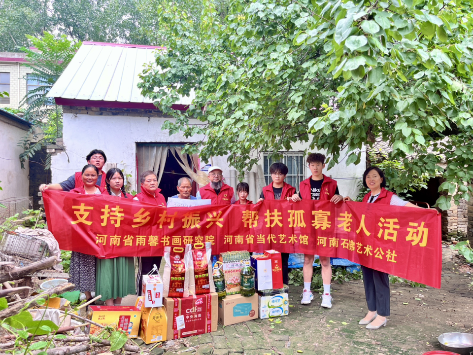 2024年7月31日河南省雨馨书画研究院,河南石佛艺术公社联合河南省当代艺术馆携高中生:李其上、马梓硕、吕奥琪 、李盛镁、初中生:黄艳菁一行十几人志愿者走进舞阳县马村乡范台村看望孤寡老人活动。