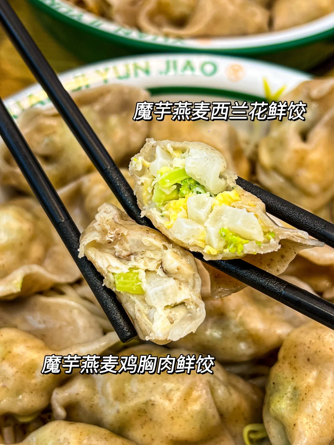 碳水脑袋一天不吃主食就头脑发昏 这次真的要谢谢袁记云饺了‼️ 怎么会有魔芋燕麦鲜饺这么神奇的东西 一份袁记低脂鲜饺的热量这么低!才300+kcal! 🥟魔芋燕麦西兰花鲜饺 🥟魔芋燕麦鸡胸肉鲜饺 一次上了两种口味,亲测都好吃! 现包的鲜饺,馅料新鲜,外皮Q弹 这次算是尝到中式轻食的甜头啦~ 个人口味清淡,直接点了白灼的 喜欢重口的可以加红油、剁椒和花生酱 以低脂轻负担为目标的话,建议不加酱 貌似目前实体店只有袁记在卖这个低脂魔芋燕麦鲜饺 不得不说,在做饺子这块,袁记云饺遥遥ling先👍