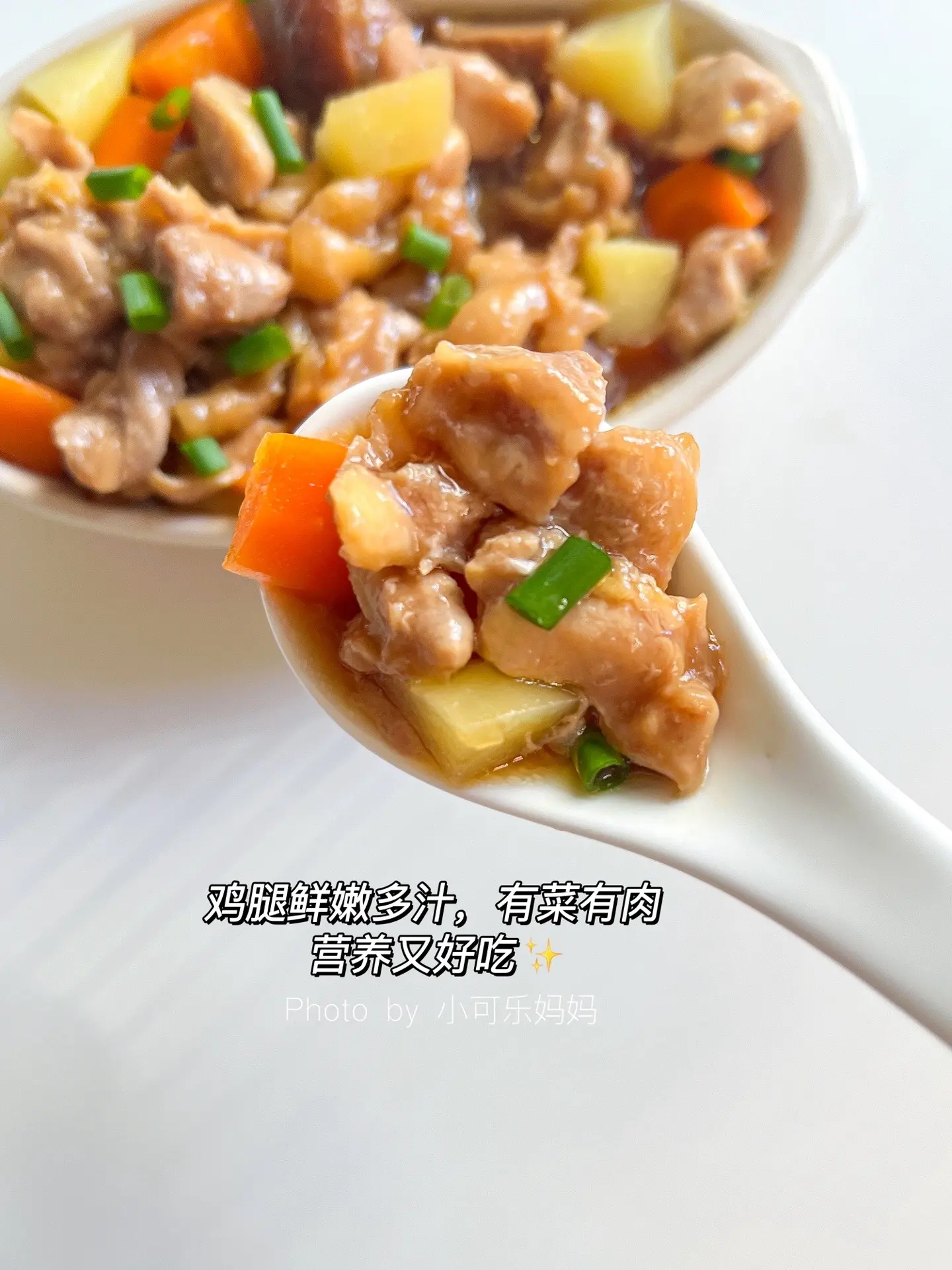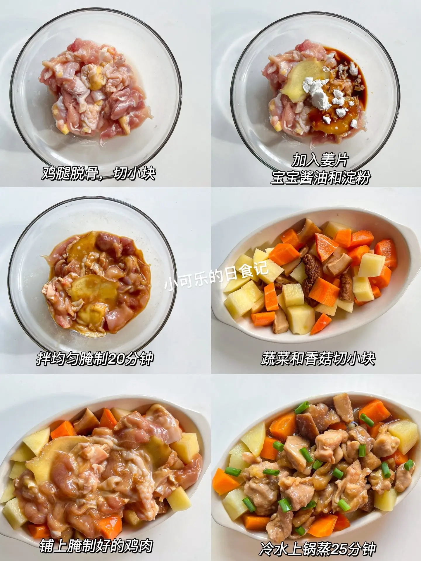 时蔬蒸鸡腿🍗鲜香浓郁 嫩滑入味好吃。鸡腿的这个做法,你们一定要试试,我每周都会给可乐做,真的太绝了,鸡腿肉滑嫩多汁,鲜香浓郁,超级下饭。搭配胡萝卜土豆一起拌饭,真的超级好吃,有菜有肉营养又好吃 🔎详细做法请看图片 ✅食材大小根据宝宝咀嚼能力调节