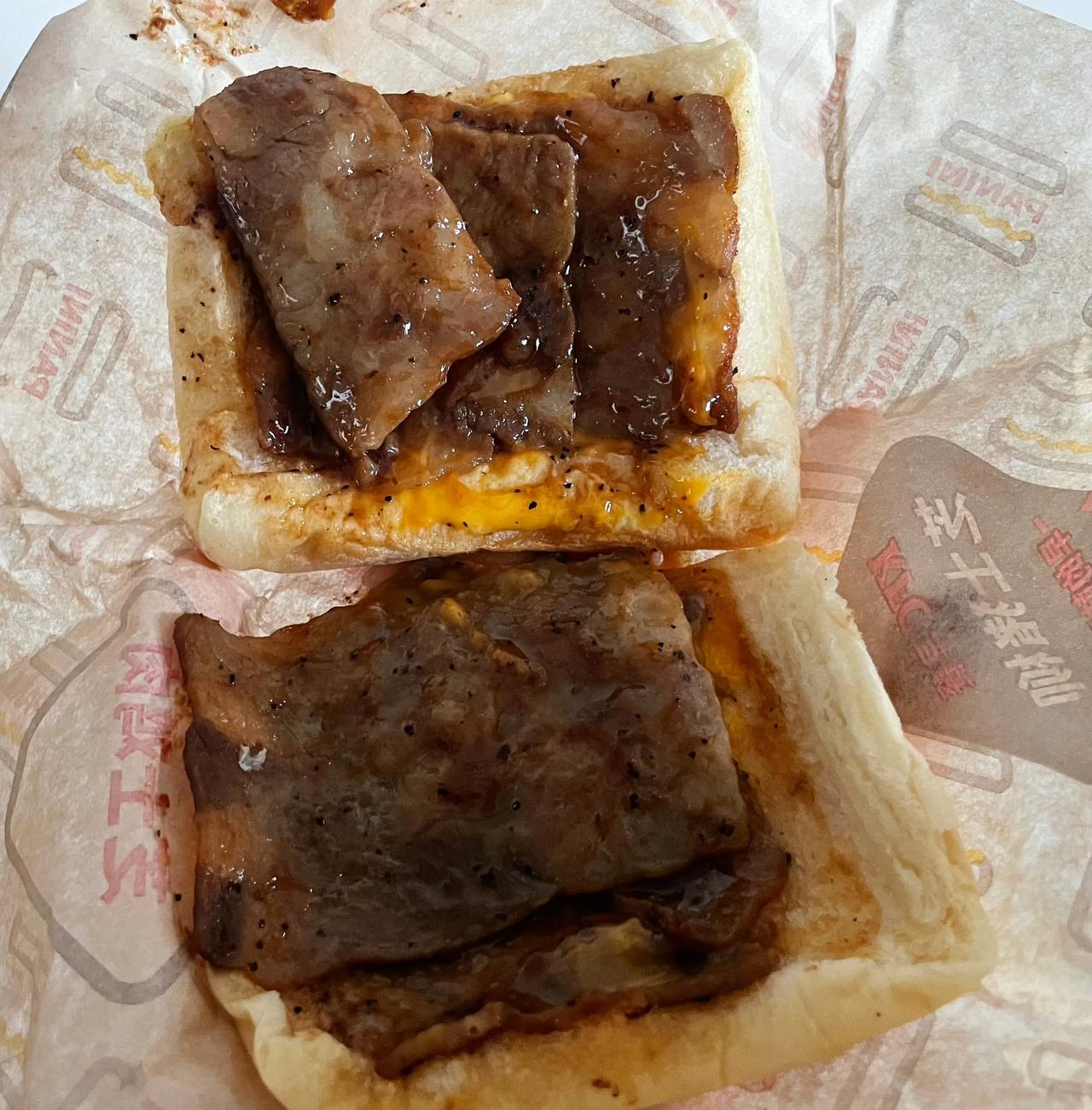 地狱早餐,配周三 … 星巴克新品:起泡酒风味美式 + 肯德基新品:费城牛肉帕尼尼 … 喝进嘴的是药 吃下肚的是泔 今天还是周三 🙂🙂🙂 早餐 肯德基