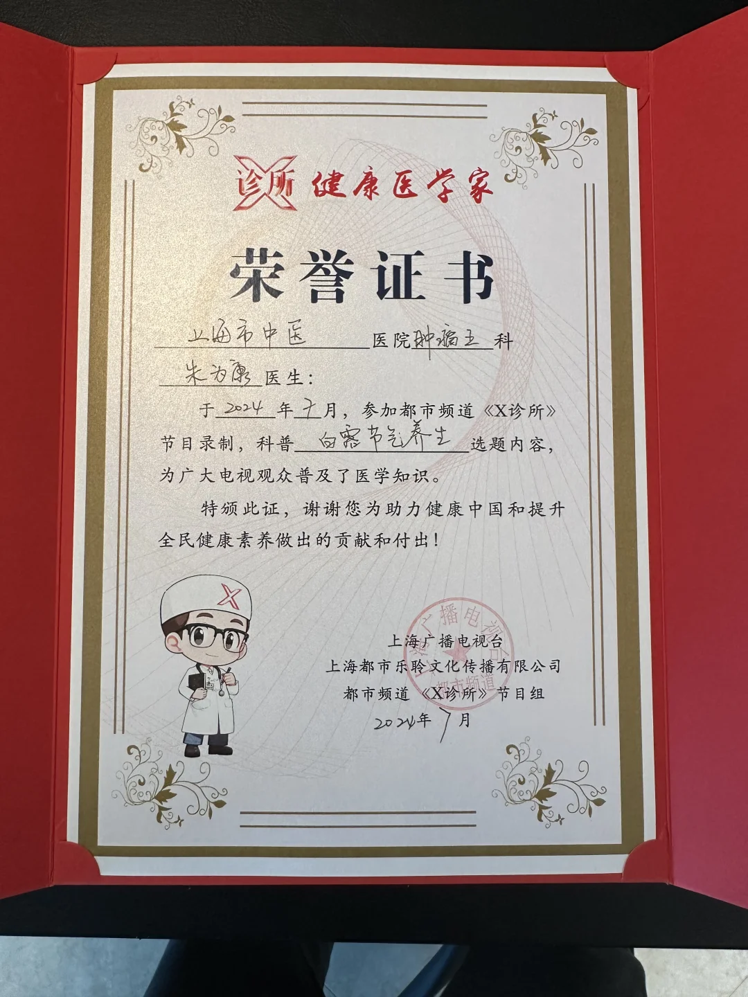 X诊所的证书超有分量!朱主任上电视,中医养生杠杠的,这专业度,认证get!