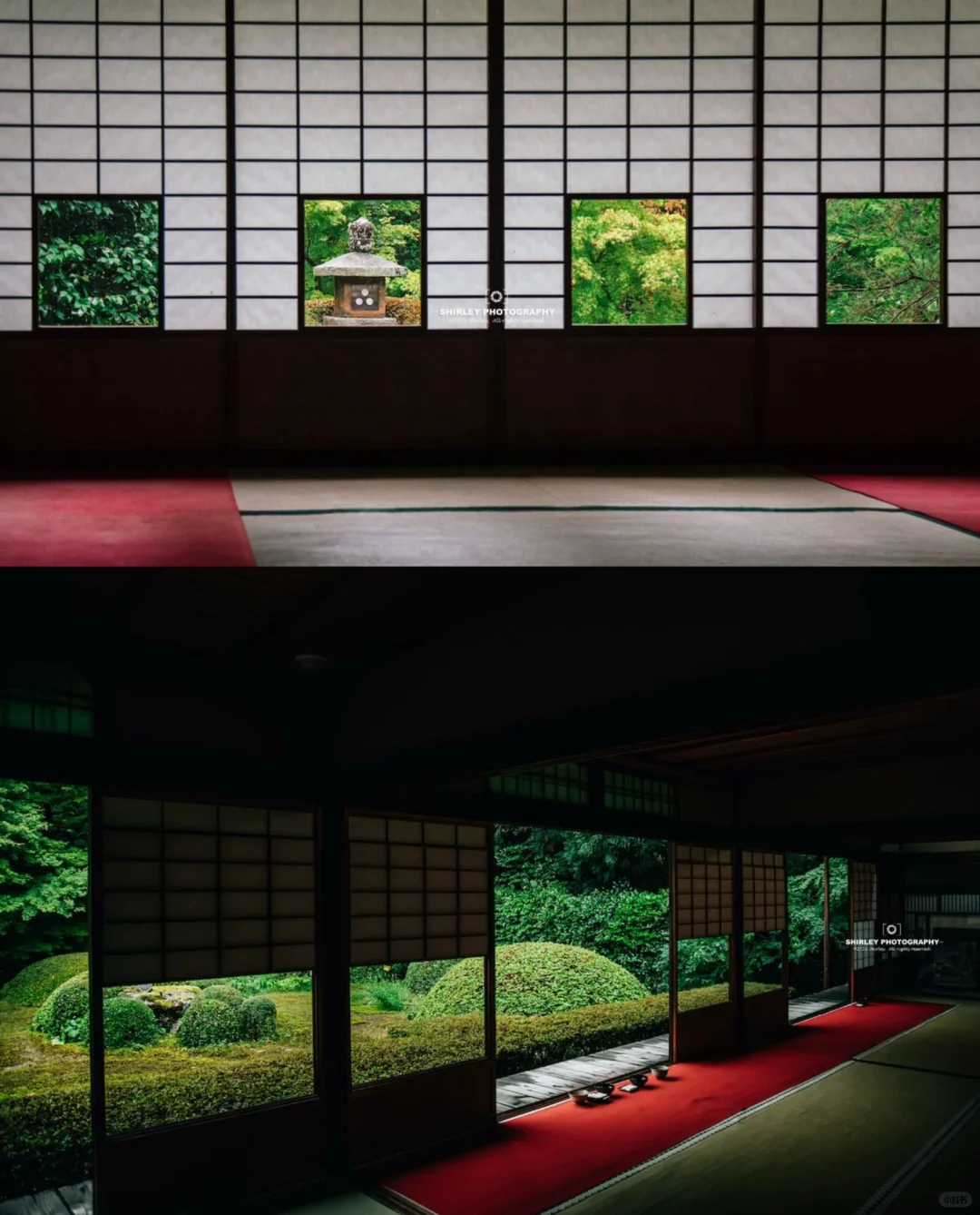 ▫️“莲华之间”纸门上的四扇小窗,可以“一窗看四季”(正对能拍出“山茶、塔、枫、松”,象征四季)(P8上)
