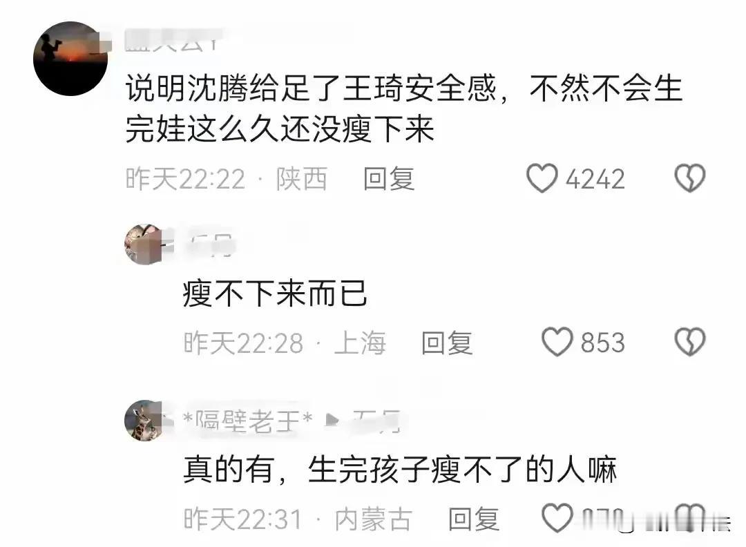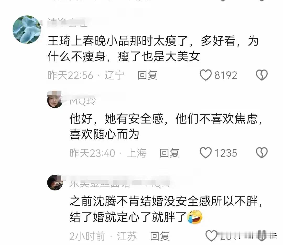 看到沈腾老婆王琦现在的样子,网友们直呼:这不是从前的贾玲吗? 怪不得沈腾对贾玲这么好。 怪不得网友们一直对沈腾马丽CP耿耿于怀。 这说明王琦实在是太幸福了,遇到沈腾这样的好男人是一生的幸运,这么红在娱乐圈这个大染缸这么多年,还能做到如此洁身自好没有一丝绯闻,太不容易了! #沈腾一家度假 老婆王琦罕见露面#