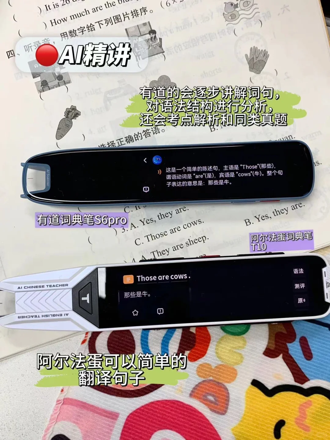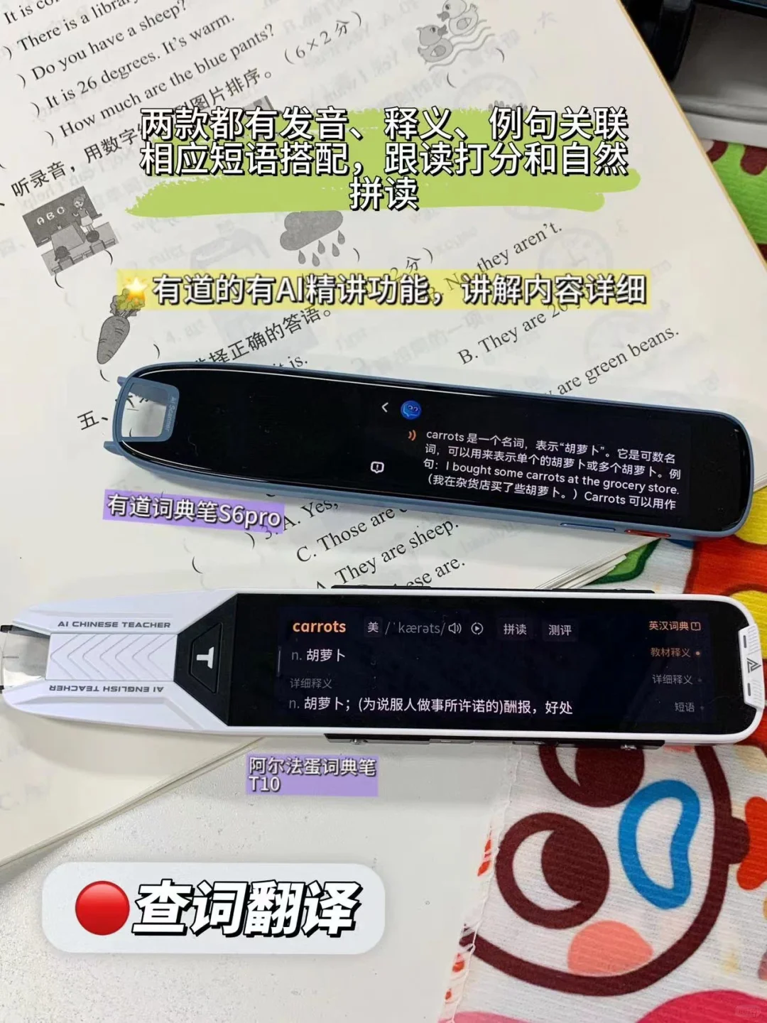 我给孩子选的是 ✔️有道词典笔S6pro和 ✔️阿尔法蛋词典笔T10这两款