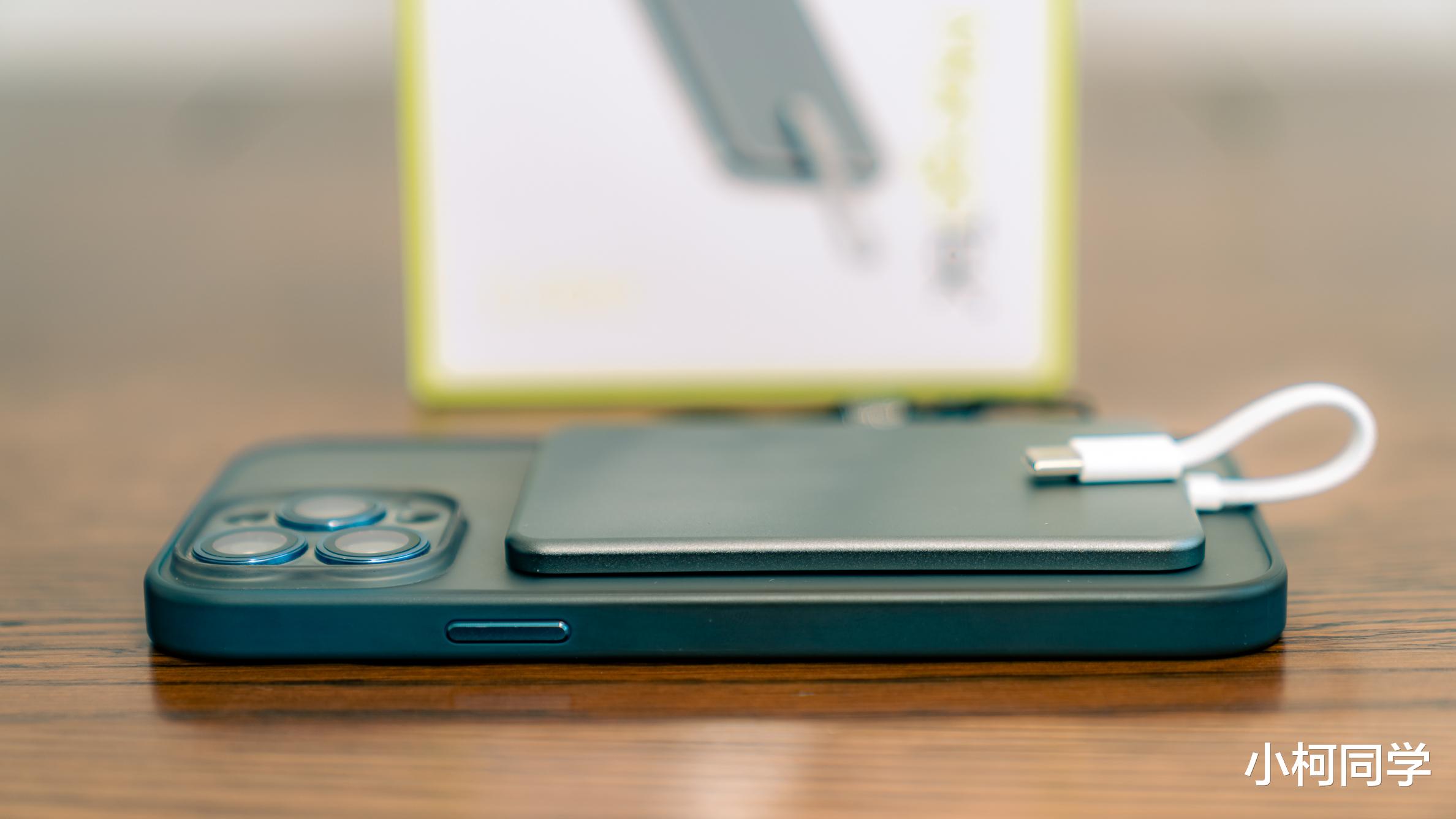 磁吸收纳的自带线,可以连接iPhone15/16系列手机直接充电。