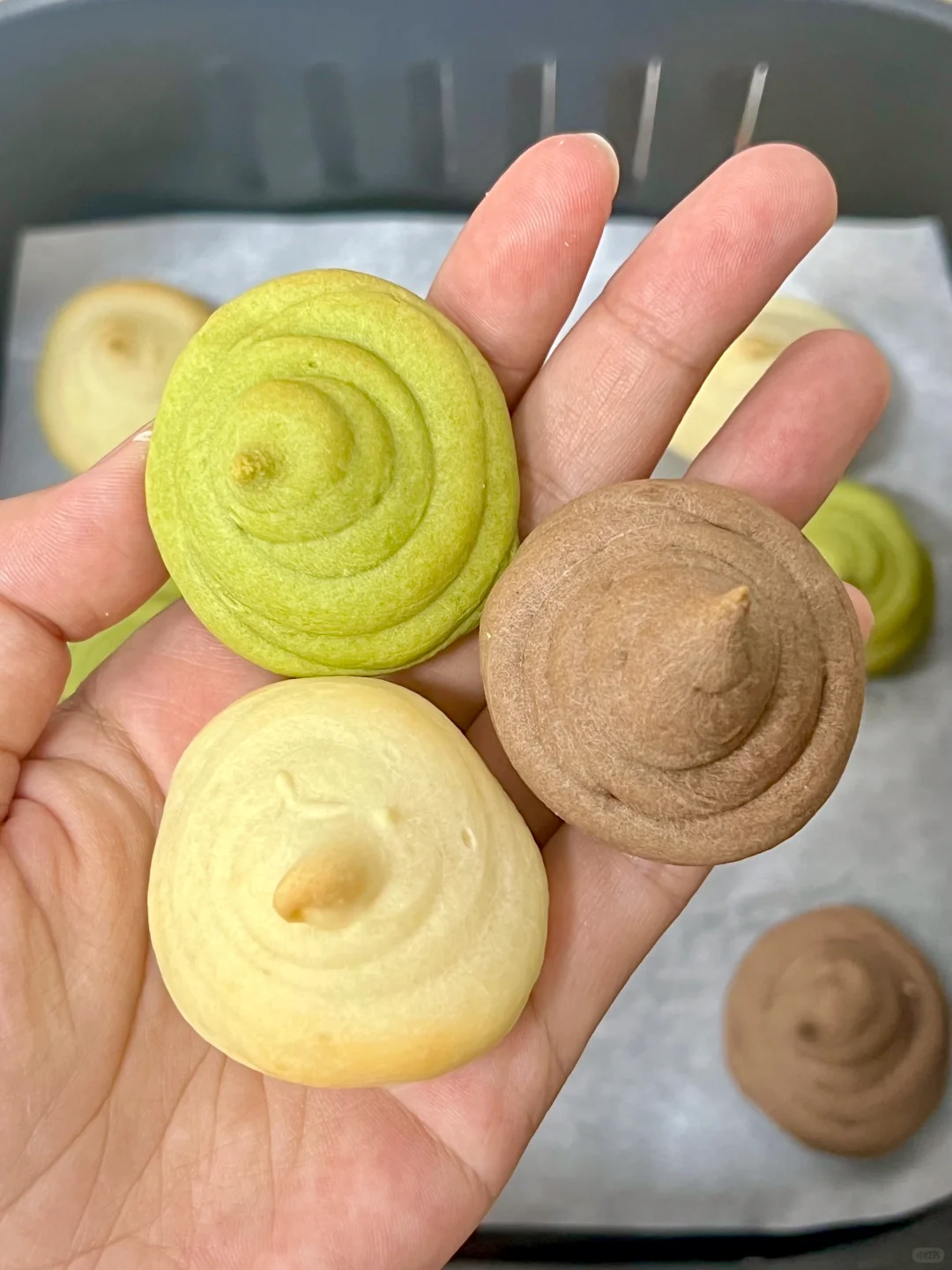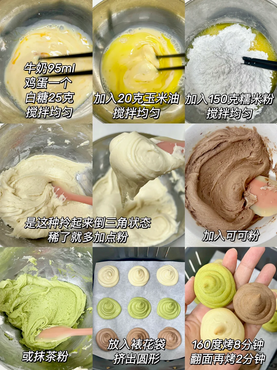一次做三种口味的!! 抹茶、可可、原味!都好好吃啊!! 圆滚滚的 我一口一个🤤糯叽叽的太香啦 做法在图上~
