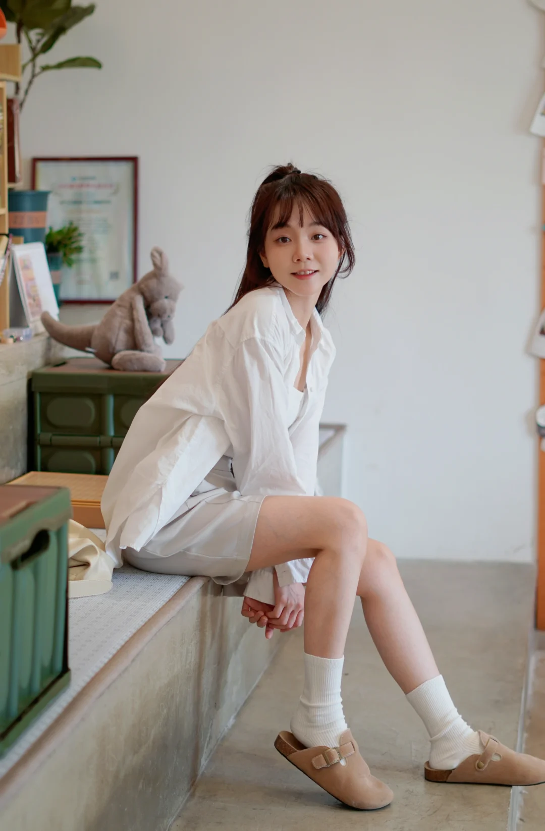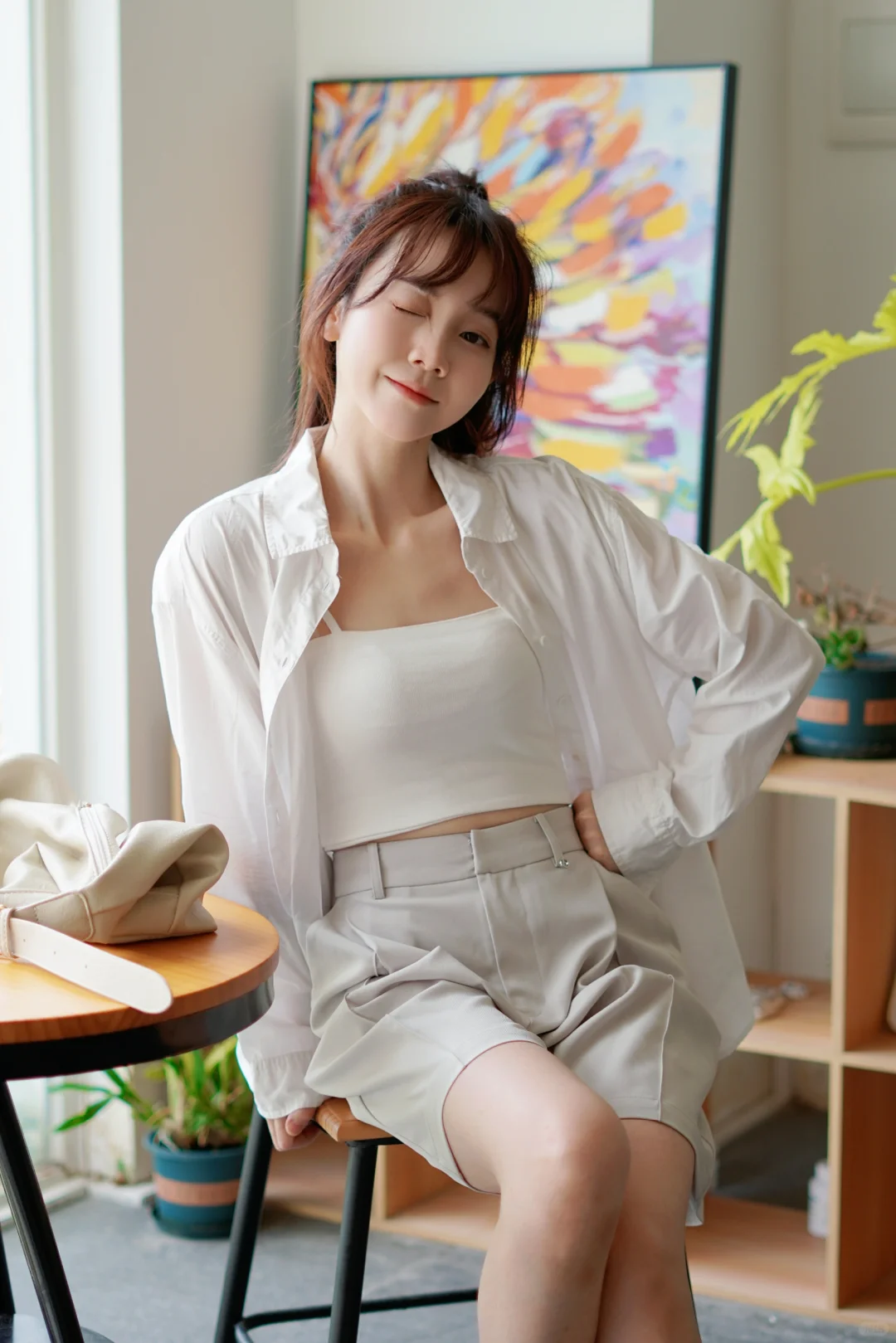 这长腿也太犯规了吧,看着都想放假!天天这样chill,老板知道吗?