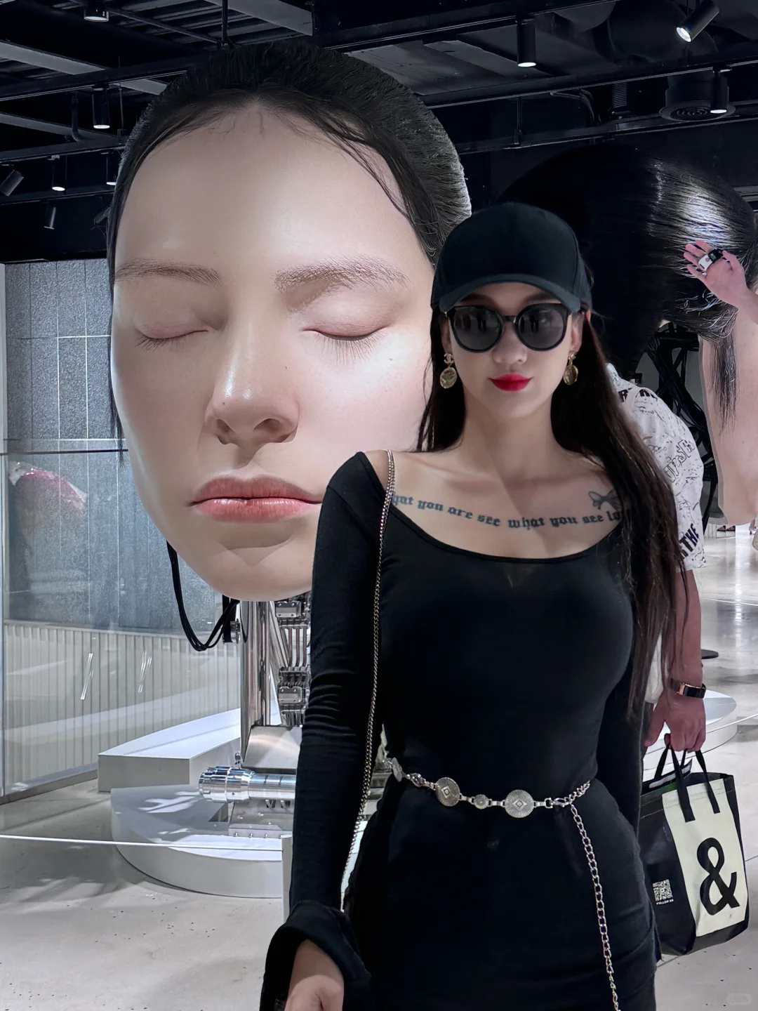 最吸引眼球的新装置是进门就能看见的超酷炫仿真人 简直帅到不行 新款墨镜非常具有未来科技感 虽然不太好驾驭但真的很时髦