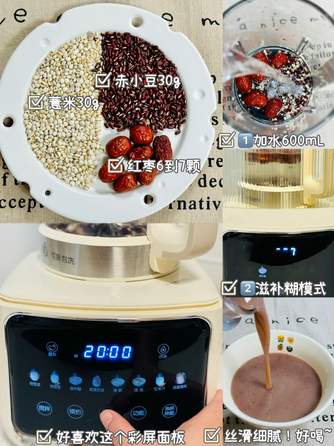6️⃣赤小豆30g➕薏米30g➕红枣6颗➕600mL清水