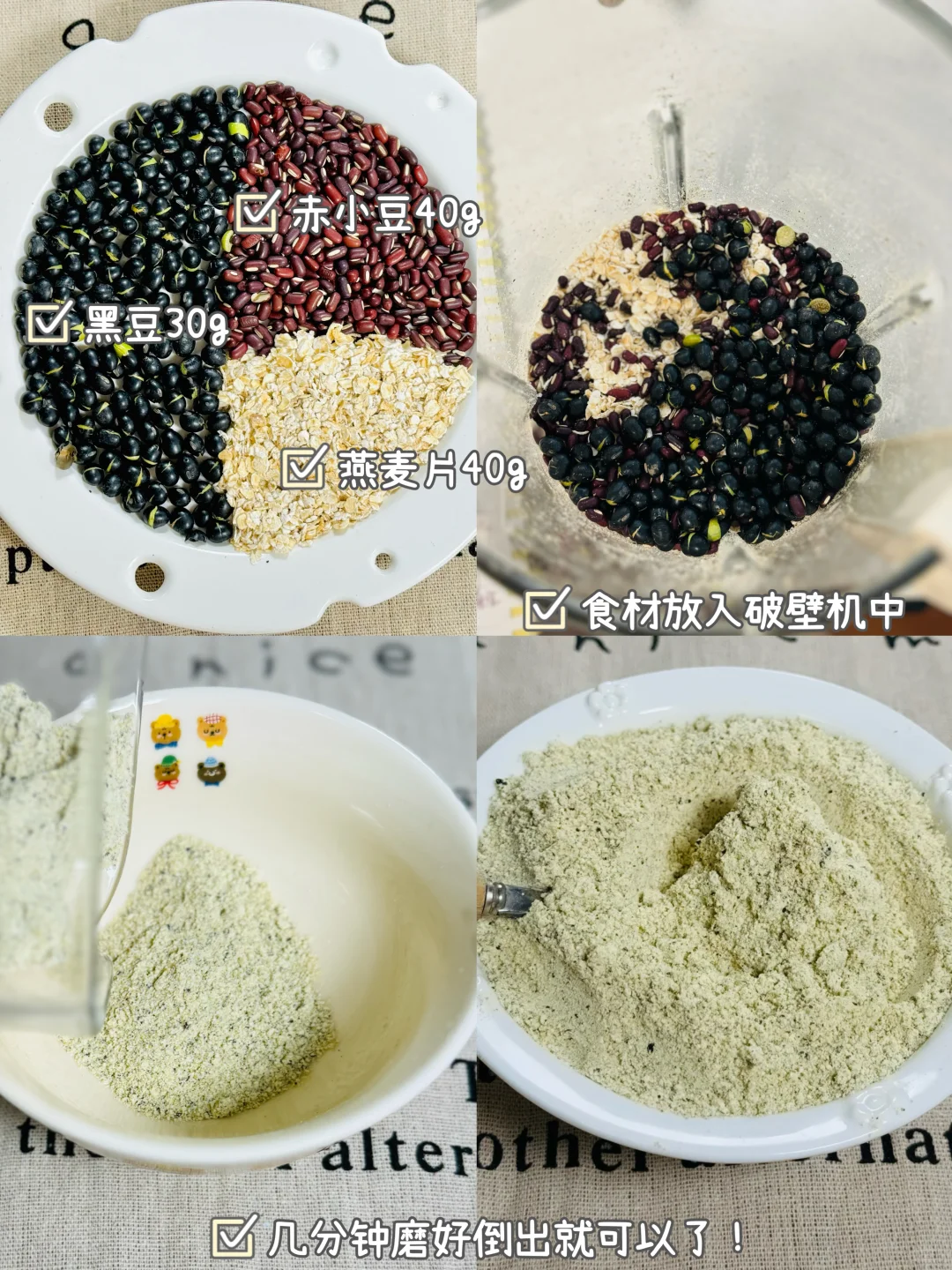 (黑豆30g➕赤小豆30g➕燕麦片40g,食材需要炒熟)