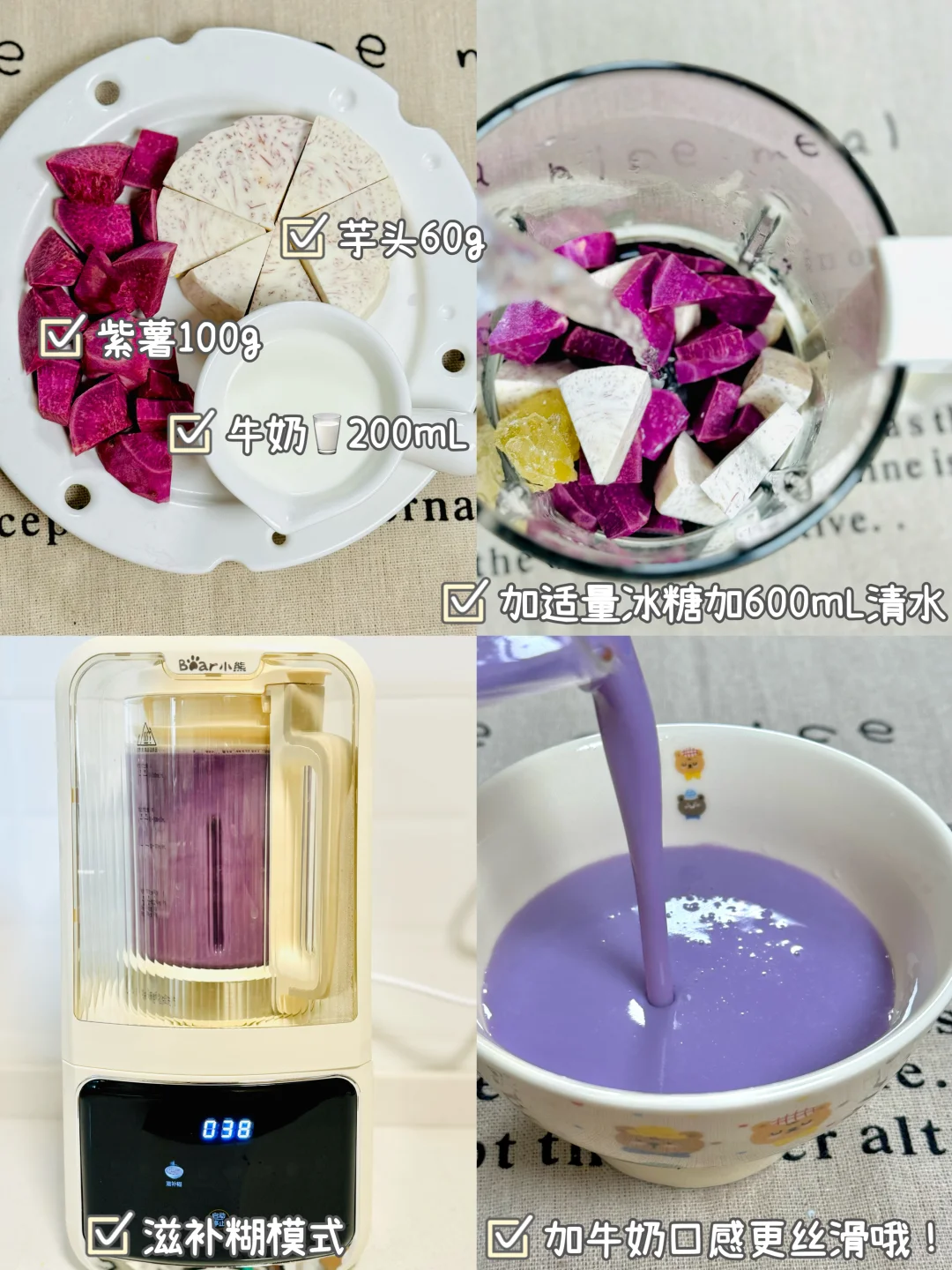5️⃣紫薯80g➕芋头80g➕牛奶➕500mL清水