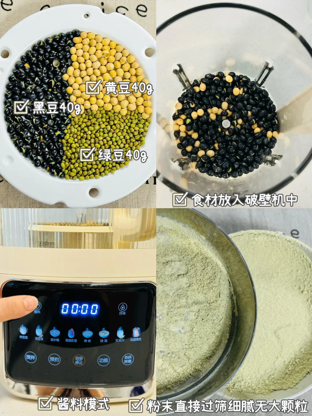 (黑豆40g➕黄豆40g➕绿豆40g,食材需要炒熟)
