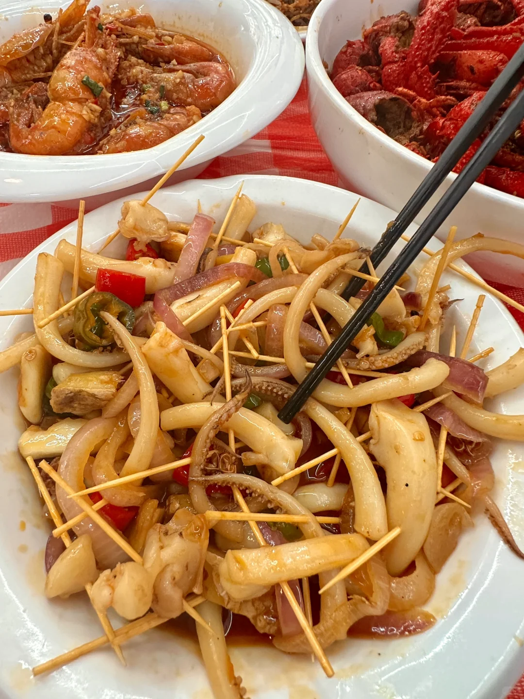 秘制蟹钳 牙签鱿鱼 香辣蟹排…长沙这家小破店到底有多少好吃的啊😭!! 就藏在长沙IFS后面的小巷子里(叫:海味.小馆)不特意去找大概率会错过!! 口味真的好正!!香香辣辣的蟹钳,百吃不厌啊🥹每次都还要再打包带回去一份!罗氏虾 口味虾也都不错~