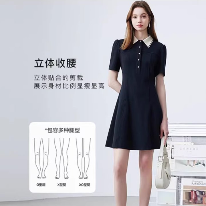 KBNE连衣裙女黑色学院风polo裙子