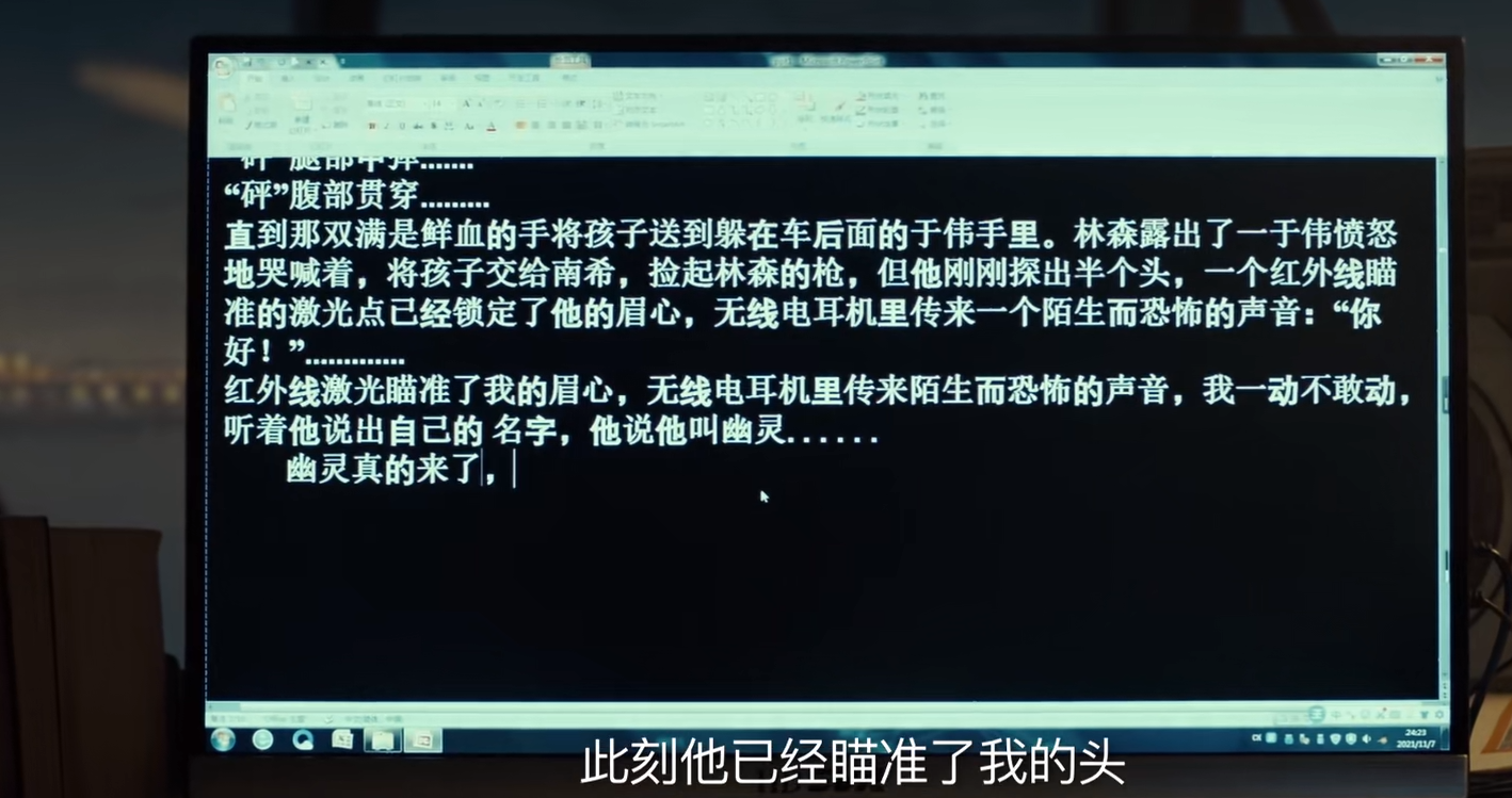 开头槽点十足的团灭戏后,镜头一转,一位面容憔悴的作者“于伟”正坐在电脑前伏案工作。