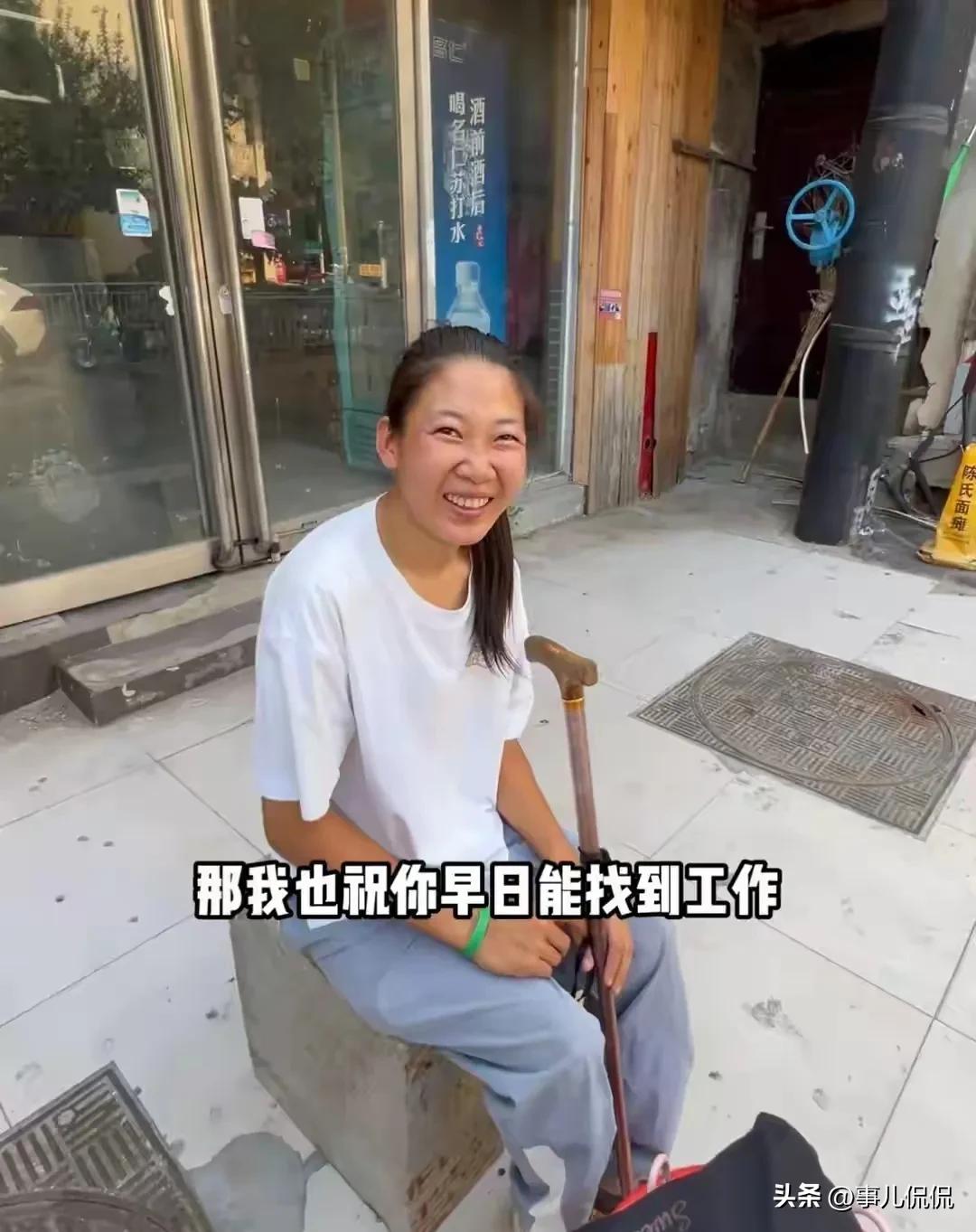 前两天,一个博主在河南的街头遇见了一个比较奇怪的女孩,女孩的右边拄着拐棍,左手上拎着一个塑料桶。