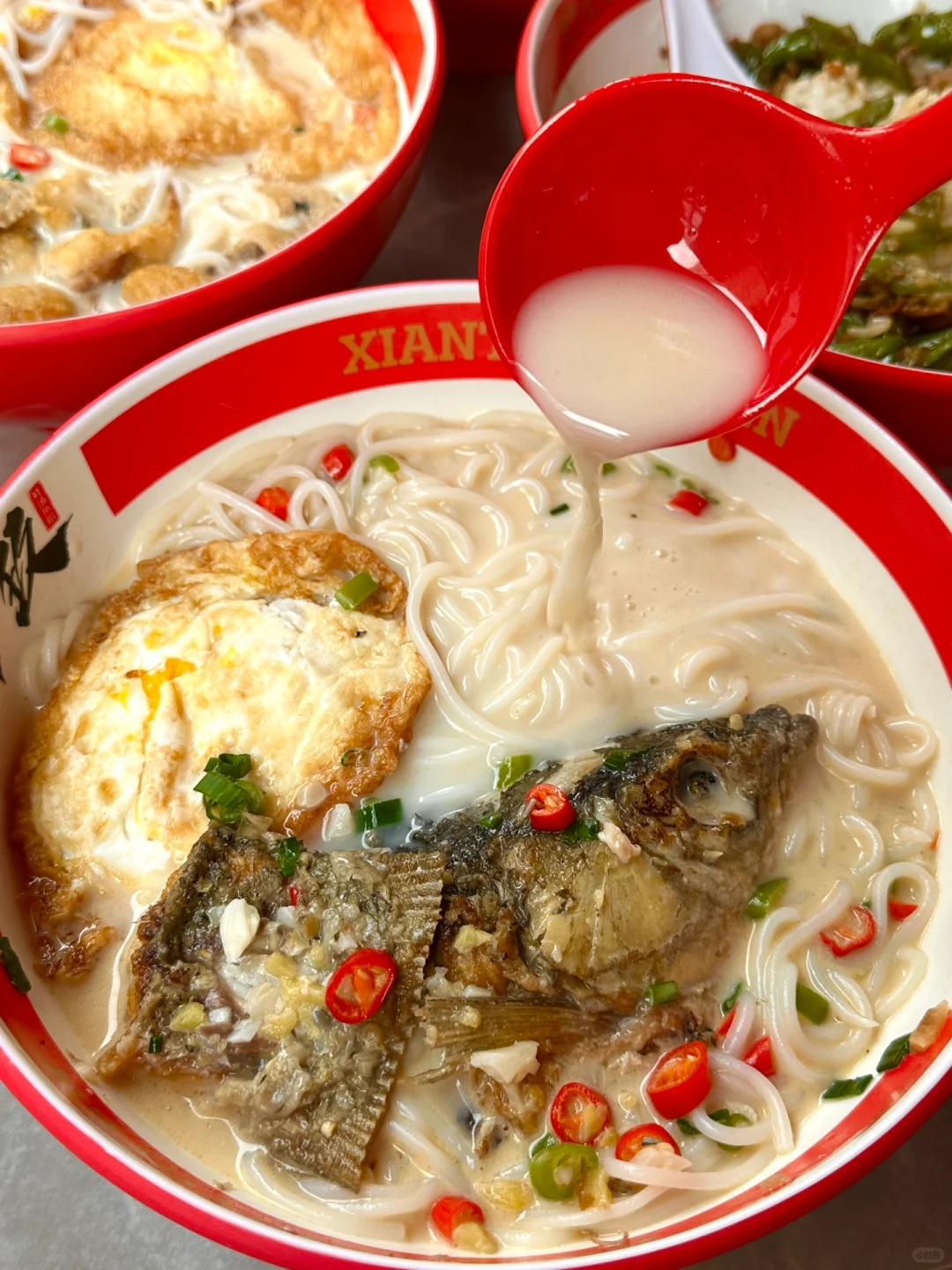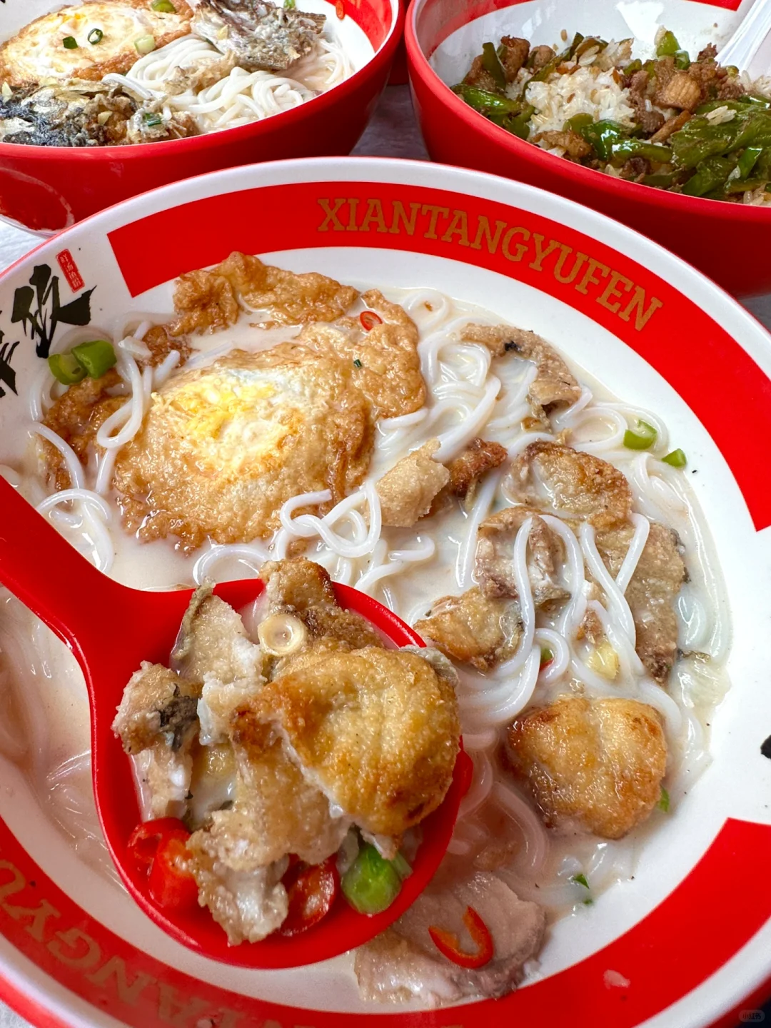 跟着德思勤土著!!去吃的的小破店!!后悔怎么才发现🥹🥹🥹… 都是现点现做的,鱼头粉 鱼片粉…都很不错!满满一碗都是扎扎实实的料!!鱼汤巨鲜吼吼喝😭!! 真心是每次好吃的还要打包带走一份。。。 居然还有盖码饭!!猪肝 辣椒炒肉…现炒的码子拌匀米饭真的太爱了…路过一定要去吃!!