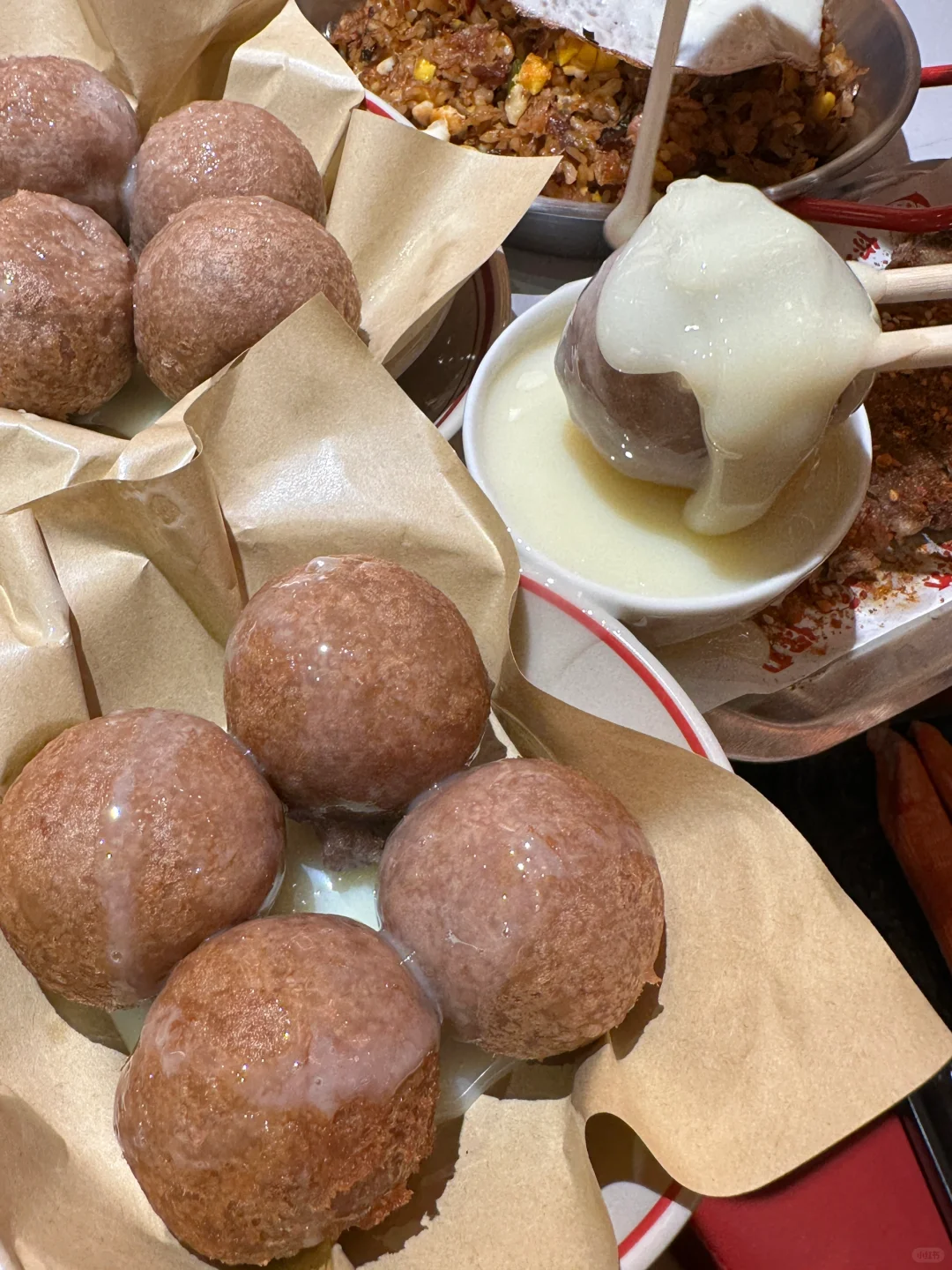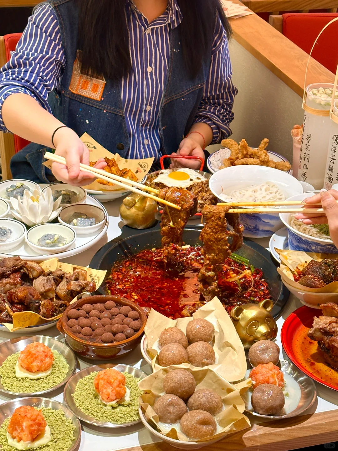 粉扑扑的桃桃无花果奶昔!!!我终于在长沙也吃上了🆘!!!吼漂亮啊啊啊!!! 细腻的桃桃奶昔,撒上面满满的无花果,淋上魁花蜂蜜真的貌美又好喝!! 还有生巧朱古力冻!!菠萝红豆炼乳!!我该怎么形容长沙这家店有多好吃啊🥹…是本爱吃辣星人会疯狂爱去的牛排火锅!! 就在五一广场,叫【江湖小牛】!江湖风格的市井火锅,进门就有被惊艳到,烟火气十足~ 每道菜都很貌美又好吃!!茉莉虾滑、龙井毛肚、窗花藕片…是我经常会点的菜,价格也不贵!总而言之,值得反复来吃的!!
