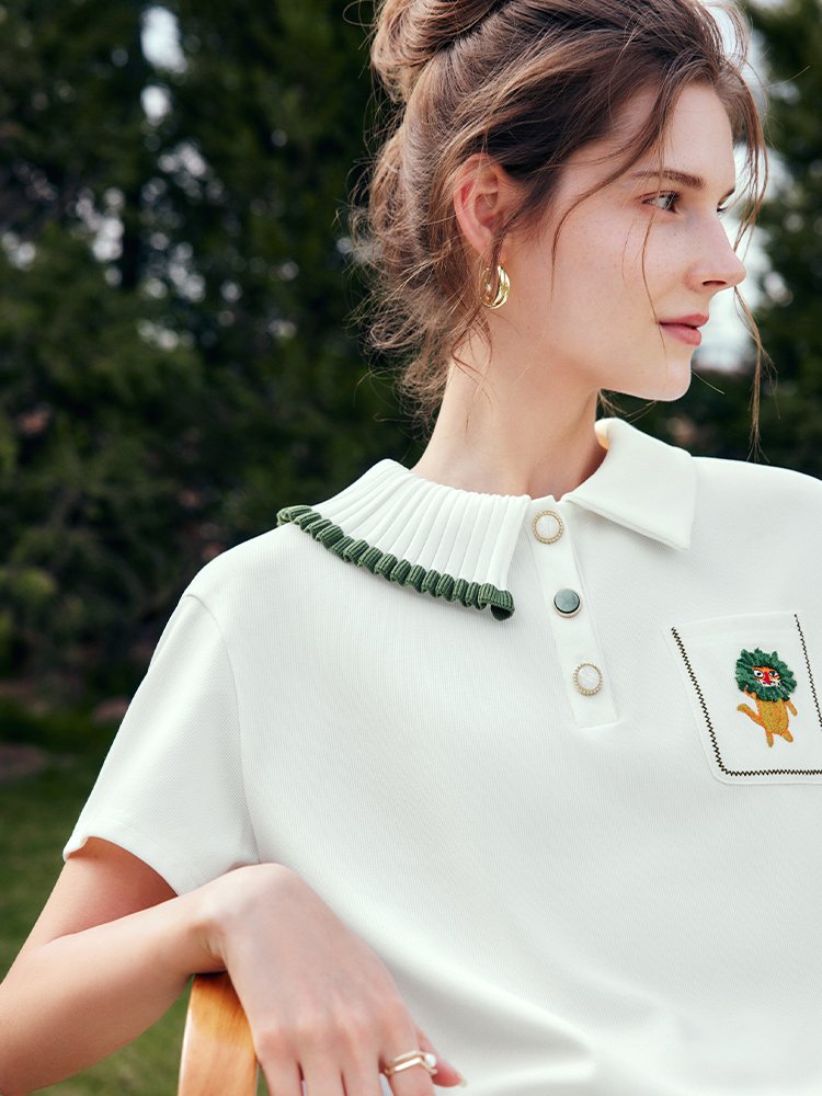 治愈放松身心的Polo领连衣裙,直筒宽松H型,不显小肚子,对身材包容性强,面料带有肌理菠萝纹,弹力显瘦,挺括透氣。