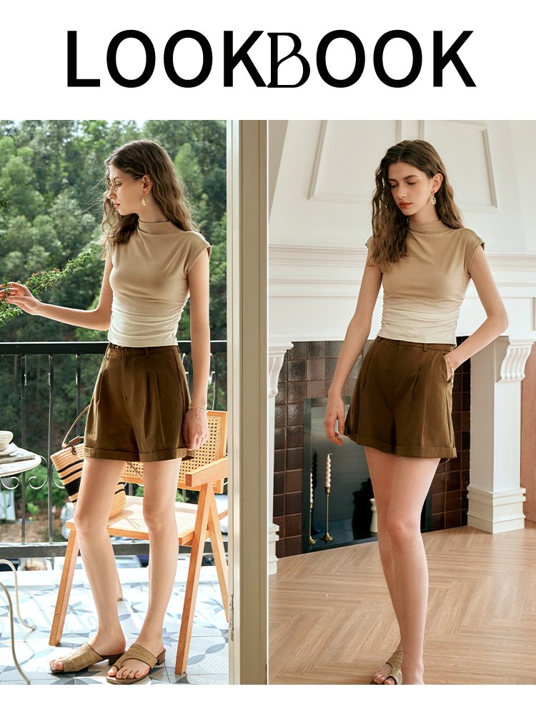 棉针织面料,云感篙弹无束缚感,亲肤细腻,小半高领美化修饰颈线,连身袖设计巧妙遮副乳,腰部两侧抽褶工艺,修腰显瘦,拉长身形比例,衣身采用渐染重工艺,丰富视觉层次,显气质显肤白