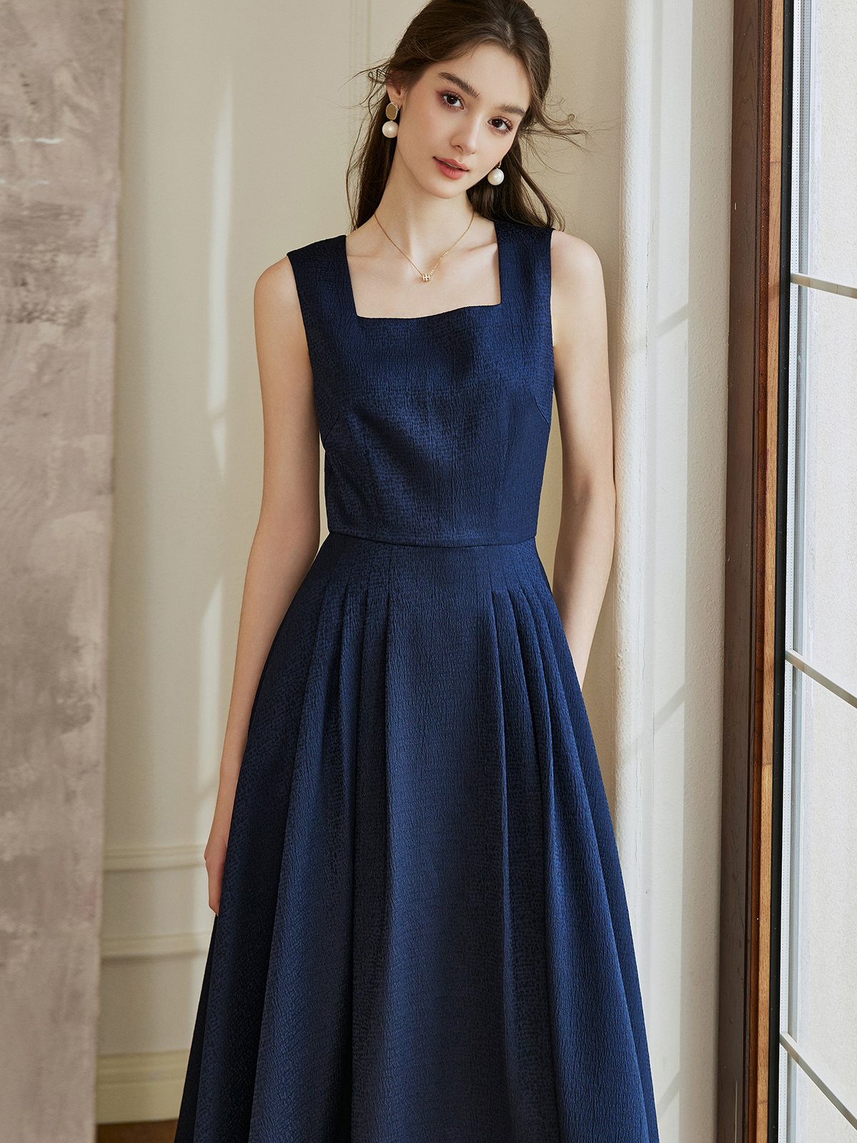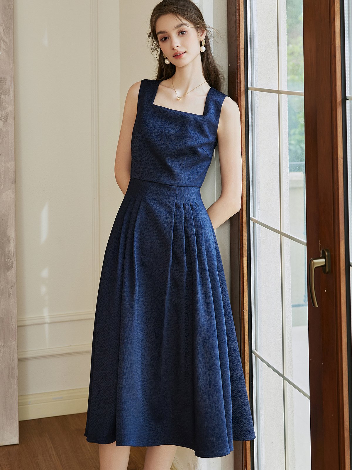 一款非常有气质的连衣裙,采用了高级的提花面料,表面光滑细腻,具有良好的垂感和挺括度,上身穿着非常有质感。简约大方的方领设计,能够修饰颈部线条,衬托精致的脸部轮廓。腰部做了收腰的设计,可以很好的凸显女性的身材比例。大裙摆的设计,行走间尽显灵动飘逸感。