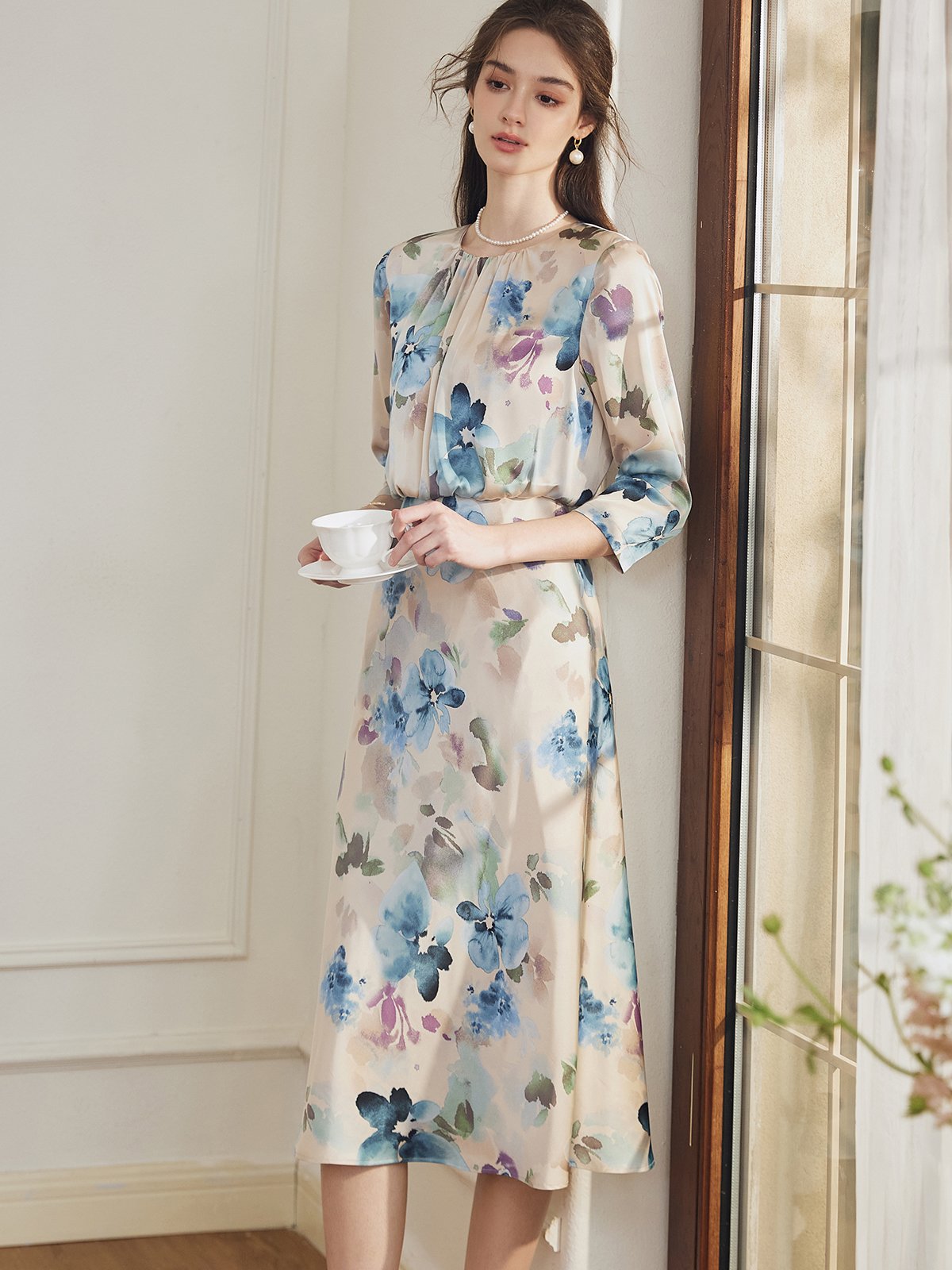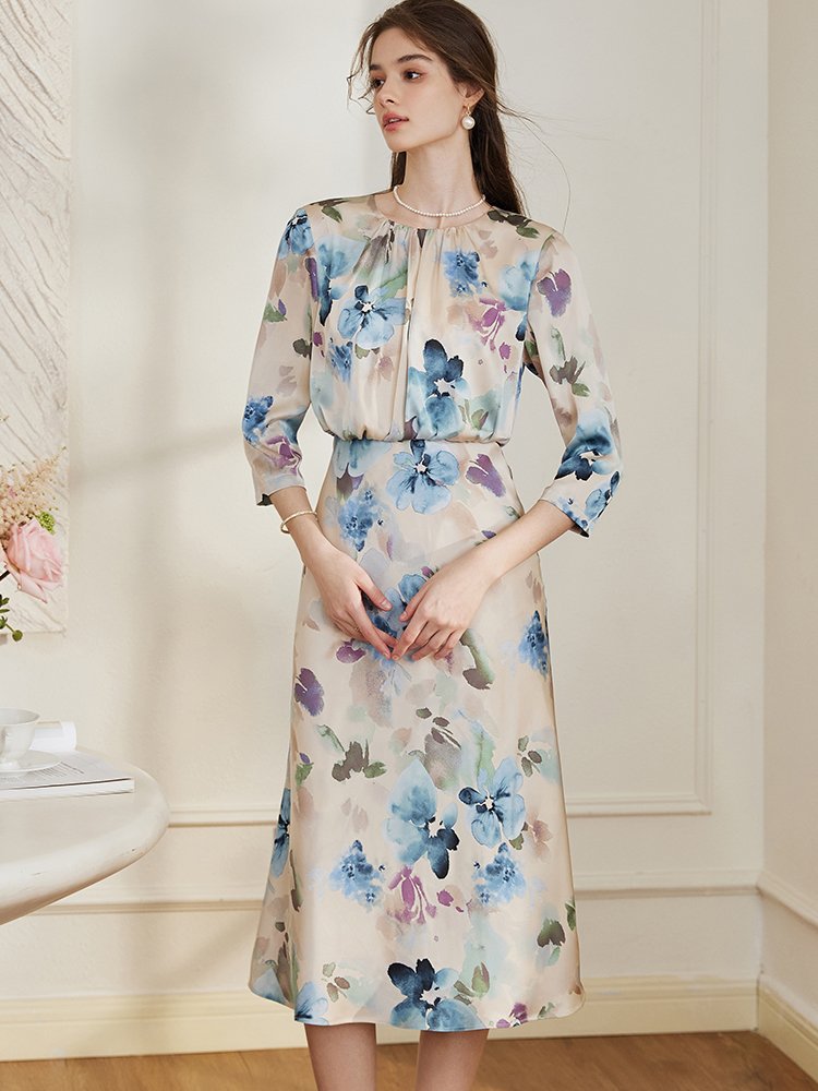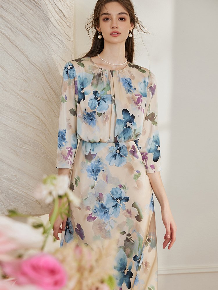 鱼尾裙摆版型,更加修饰腿部线条。法式宫廷油画印花,更添几分浪漫气息。收腰版型勾勒身材曲线,凸显身材。
