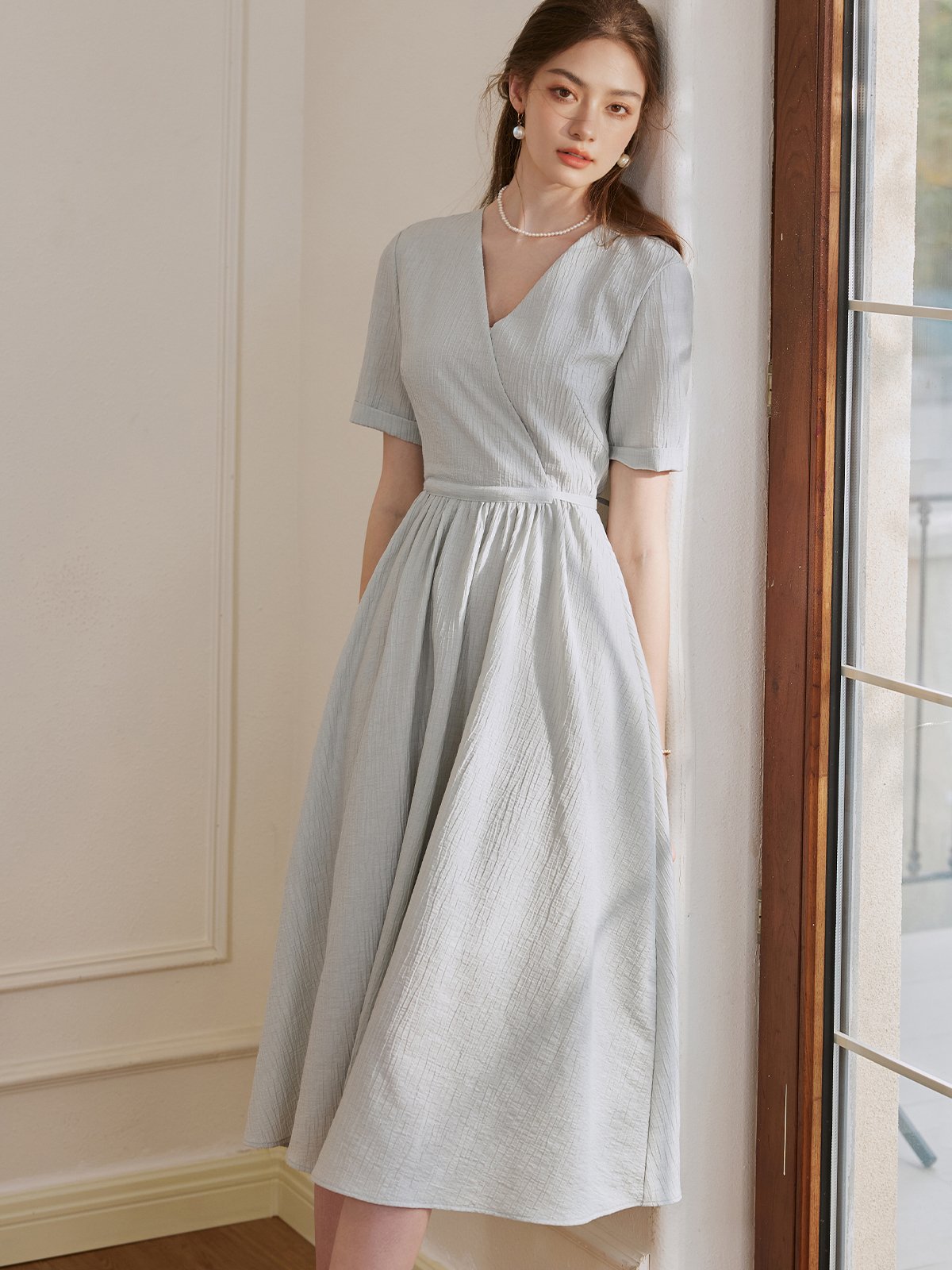 浅蓝色的色系裙子,更显清新浪漫的气息。