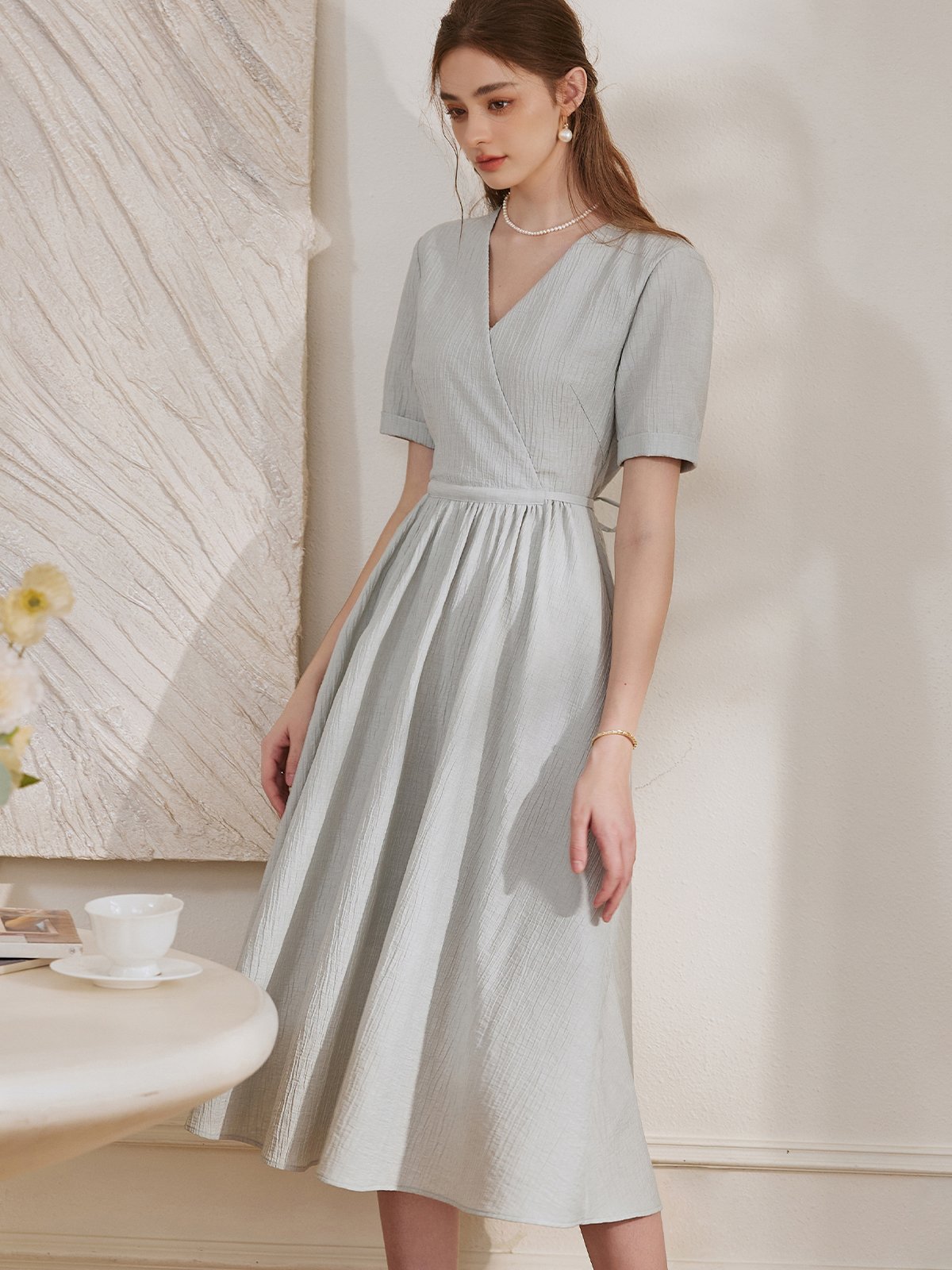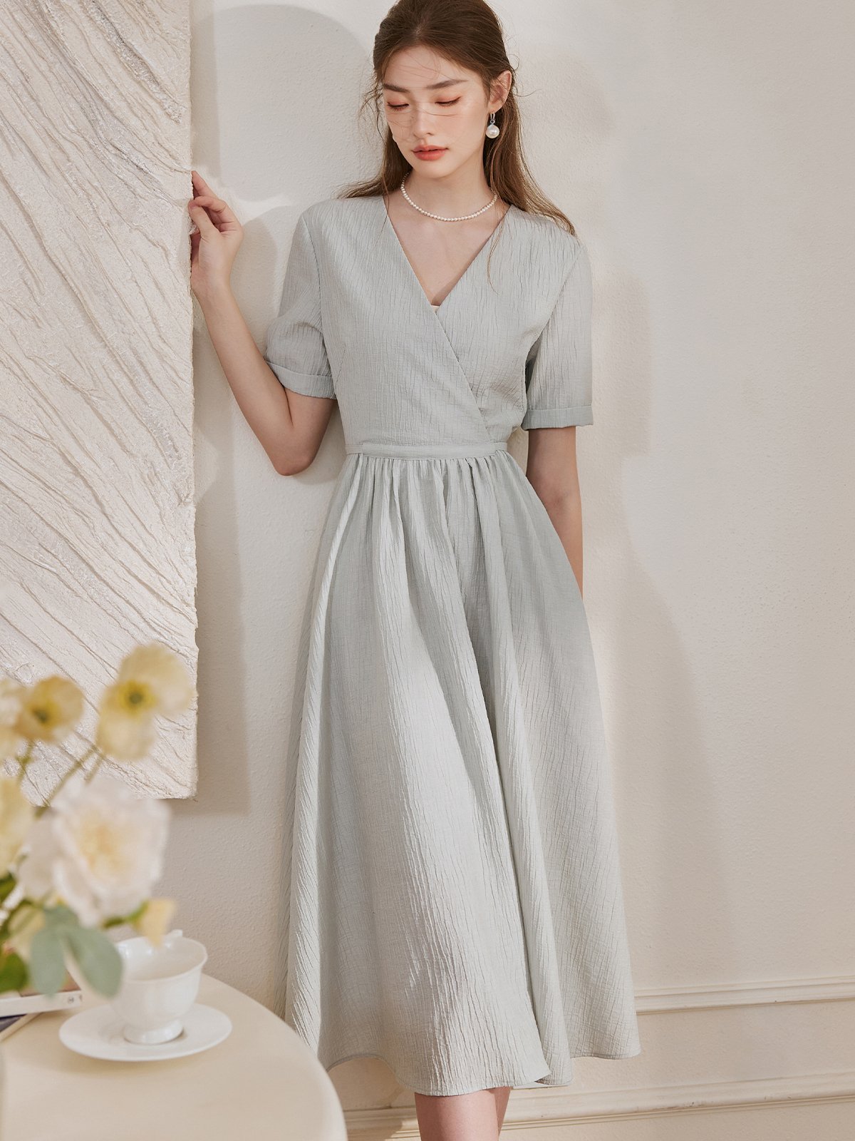 姐妹们,你们有没有穿过这么有质感的裙子?就是这件,它就是那种很轻薄的雪纺面料,穿起来真的特别飘逸。而且它的版型是这种A字型,显得我们特别有气质。