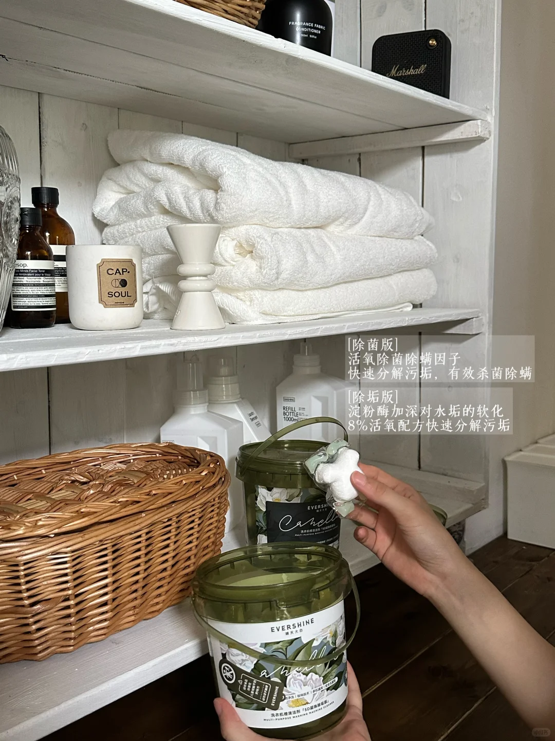 洗衣机是之前家里搬过来的,用了有好几年了,能用但经常会有些霉味,估计里面藏污纳垢了不少,拆洗费时费力又费钱,在直播间种草了晴天大白的洗衣机清洁凝珠,除菌版+除垢版一起才没多少钱够用一年了,完美解决~洗衣机滚筒用完肉眼可见的干净多了。比较意外的是它是香气,真的超级好闻!留香也很不错,准备再买些他们家的洗衣凝珠,香气太爱了!