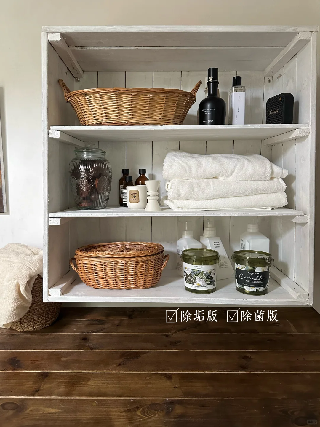 因为面积小,布局就比较简单,软装也花了很少的钱,计划放洗衣机、烘干机,以及一些清洁电器和清洁用品。