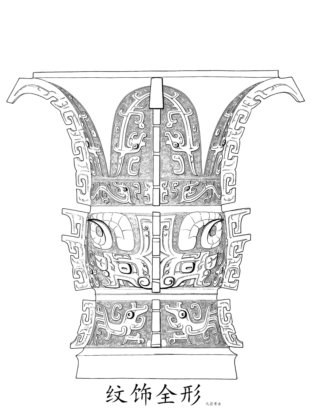 尊体作深圆筒状,圆口外侈,方唇,深腹,腹微鼓,高圈足(图一、二)。