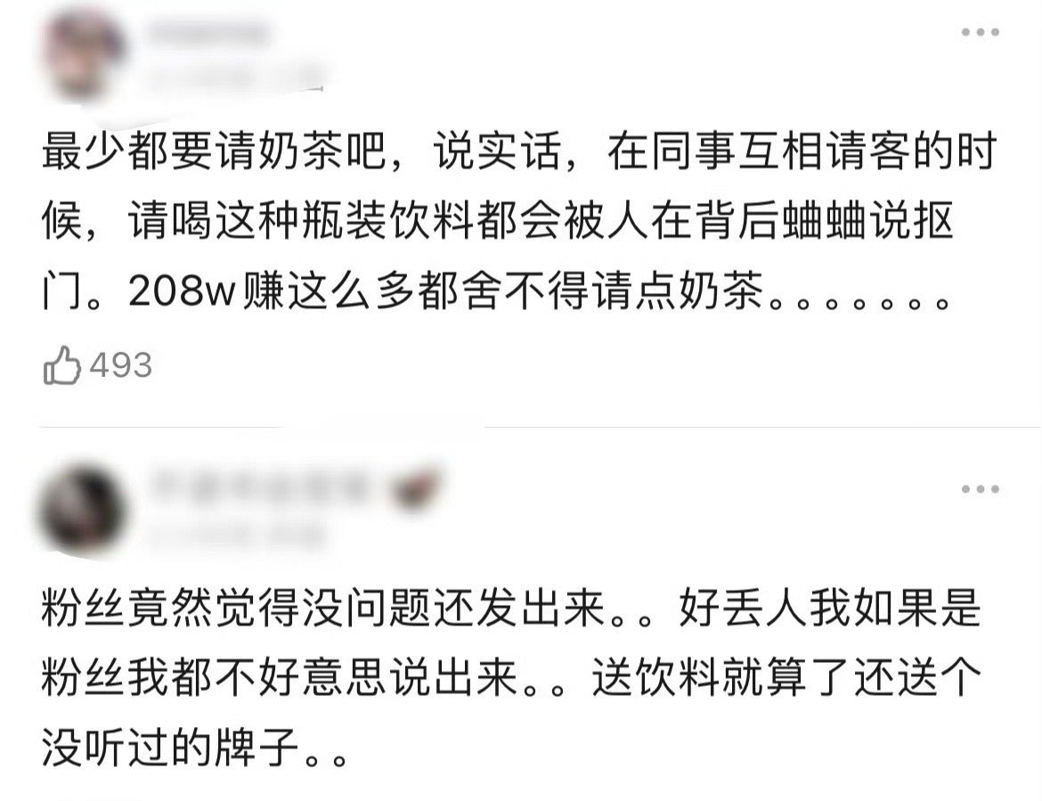 网友吐槽成毅请剧组喝瓶装饮料,称他太抠搜了,好歹是208w,不够大方,还不如让粉丝请呢……