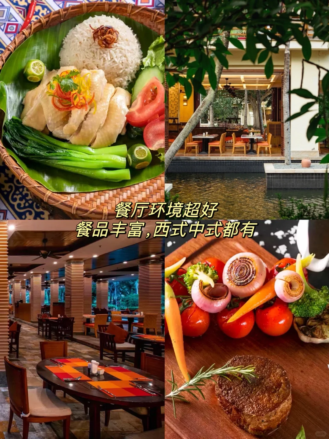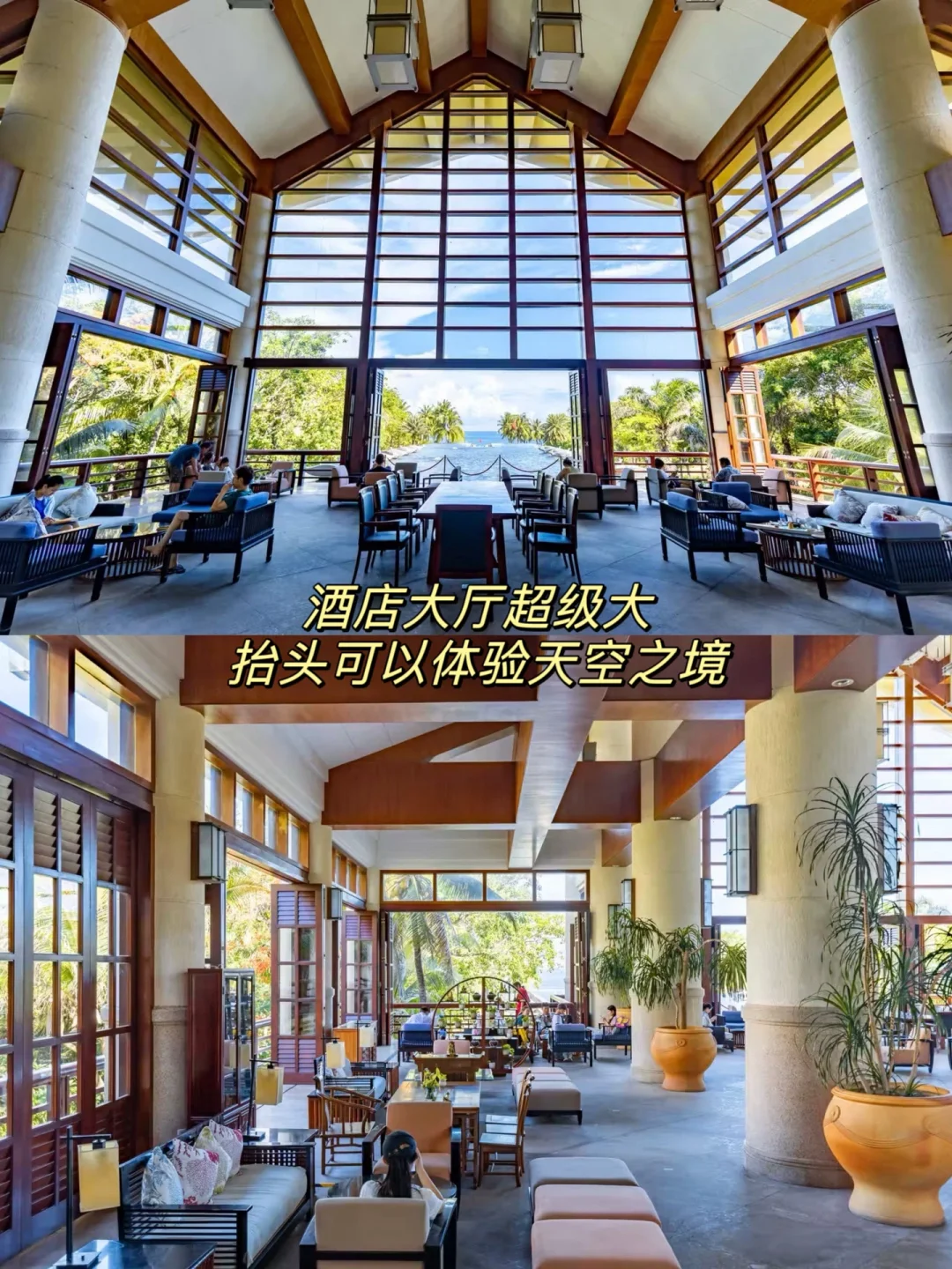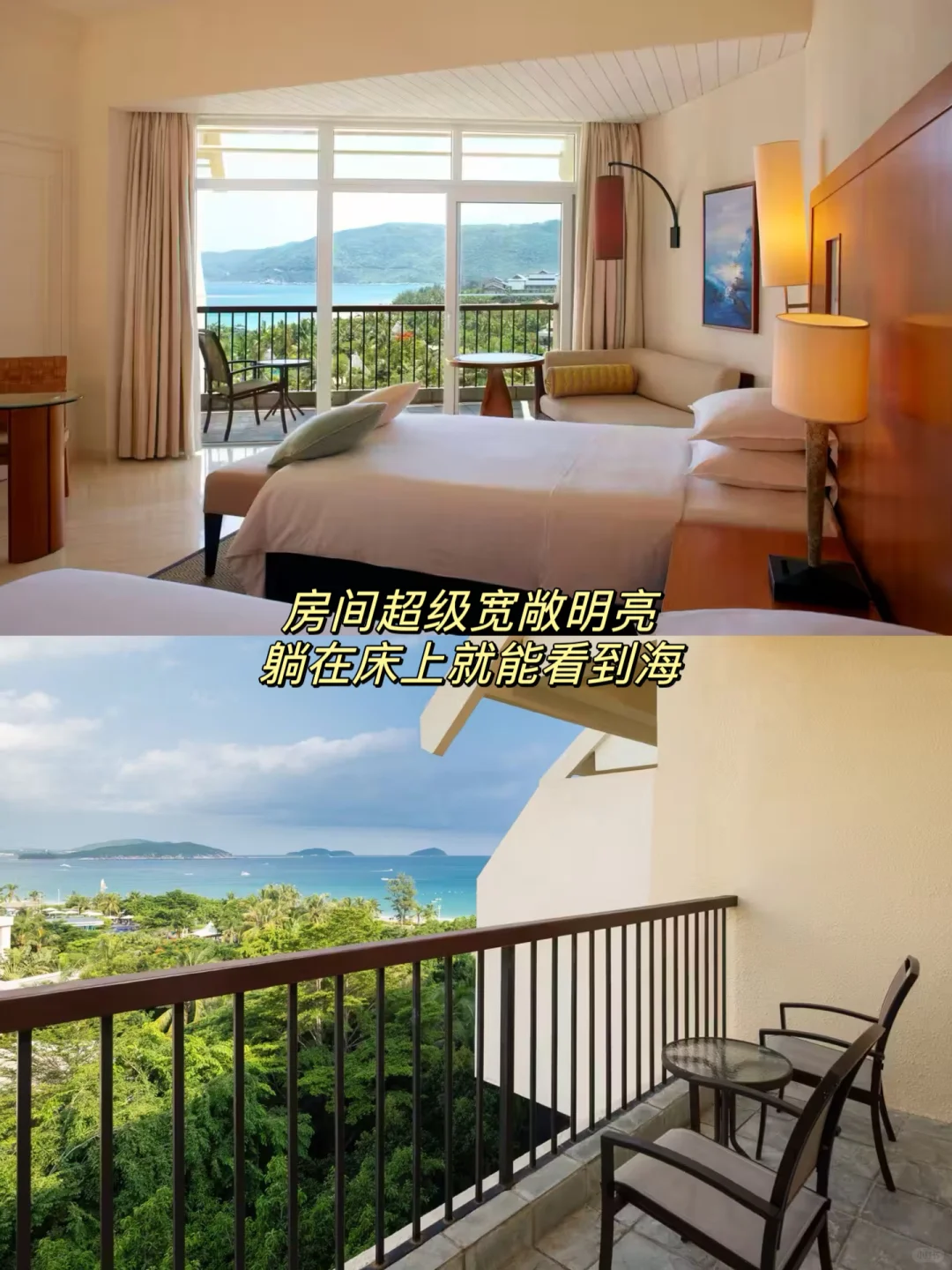 酒店位于亚龙湾的正中心,面朝广阔的大海和银白的沙滩,拥有超大的户外草坪和私家热带园林,琳琅满目的椰树🌴,还有好几个私人大泳池🏊,度假氛围感简直拉满!🤩房间也是我喜欢的木质风格,明亮干净,而且躺在床上就能看到海🌊。早午餐种类也很丰富,菜品新鲜。还有酒吧、SPA、室内儿童乐园等…真不愧是三亚的老牌酒店啊,服务品质没得说!👍