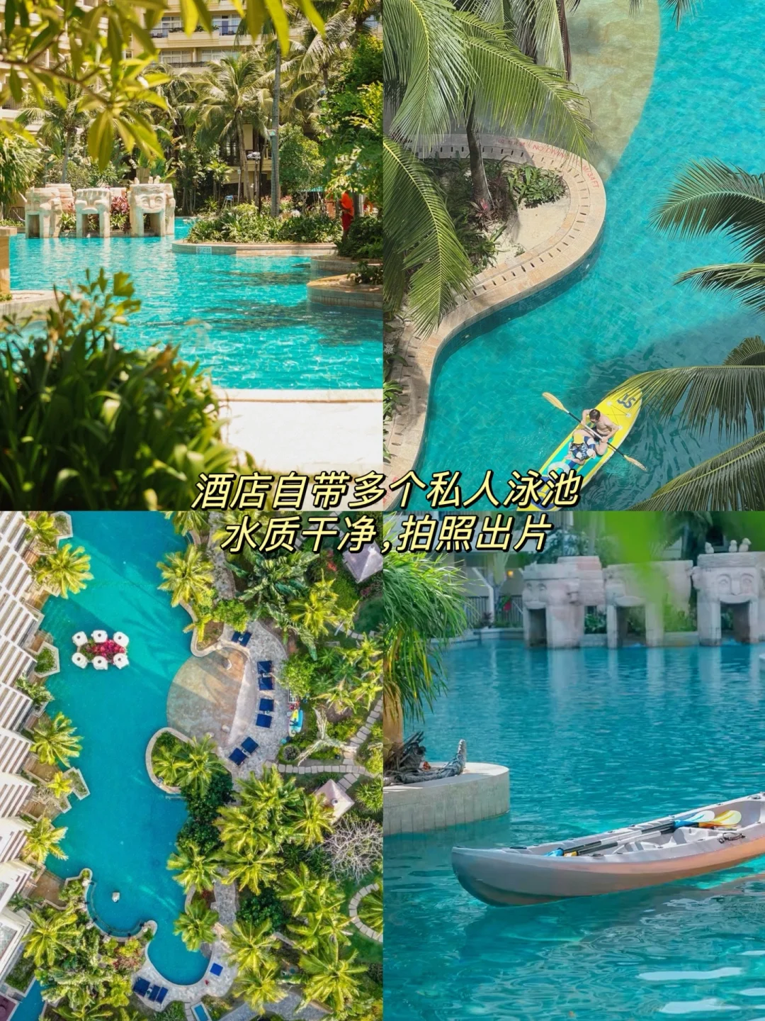 三亚泡酒店我真的超级推荐住亚龙湾,这边相对人少安静,星级酒店很多,而且海水清澈,沙滩细腻柔软,水质更适合水上项目🏄🏻。