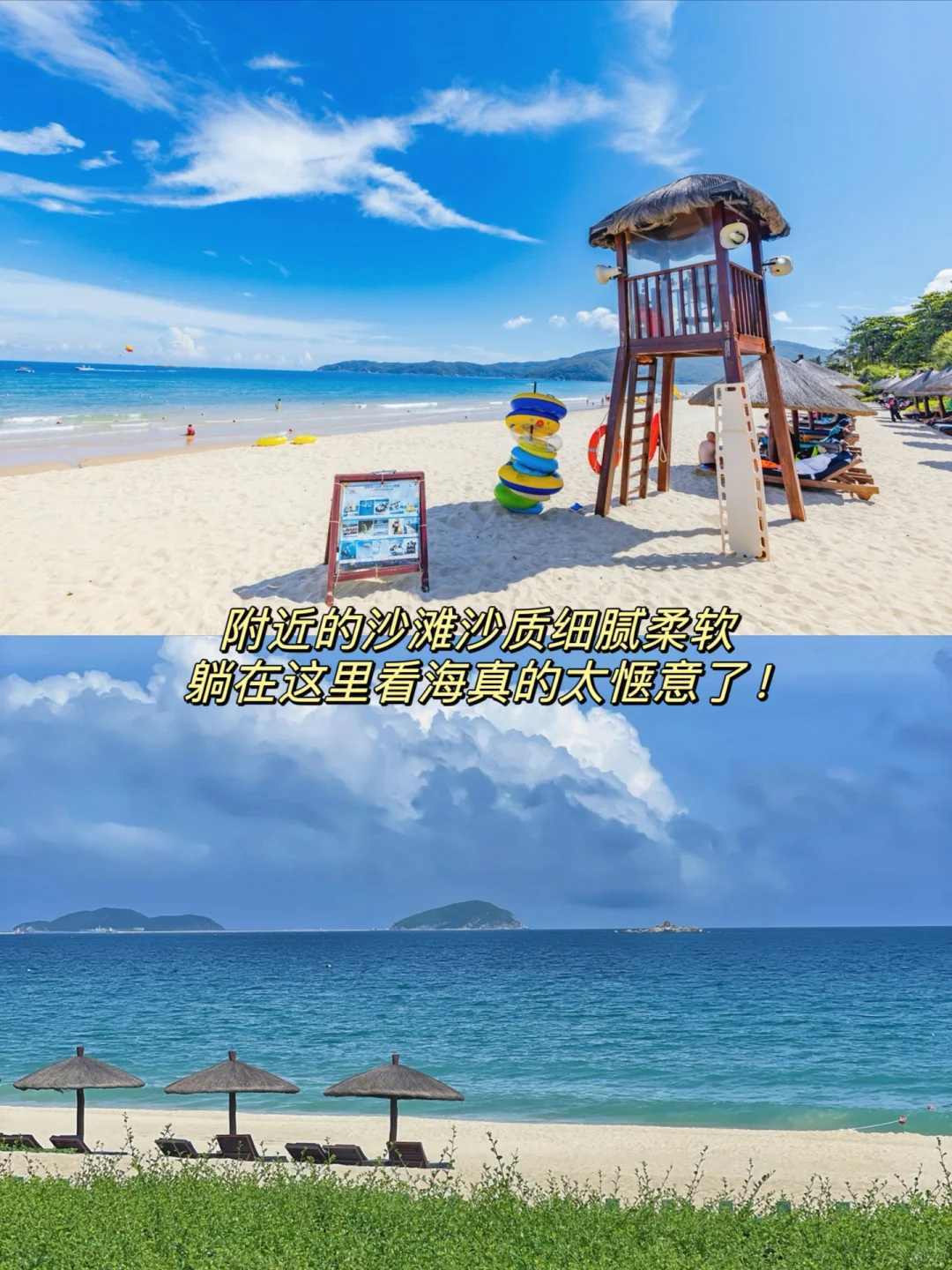 🌟亚龙湾沙滩:水质清澈,沙细柔软,海湾、沙滩、椰林,超适合躺着看海。