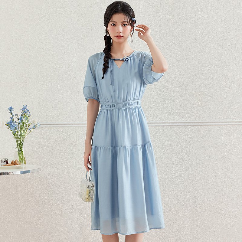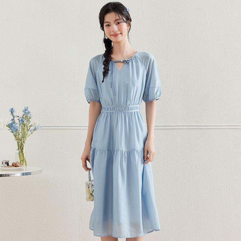 高极的清爽蓝色,赋予纯净细腻的柔和感,打造夏日舒适清爽的氧气美人,以及珍珠白,接受度最高颜色 自然打光板 干净清爽,水滴镂空盘扣领优雅新国风,复古灯笼袖纤细手臂。莱赛尔混纺,手感丰满,有真丝般光泽,挺实爽身。