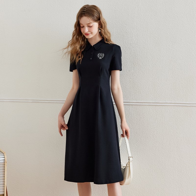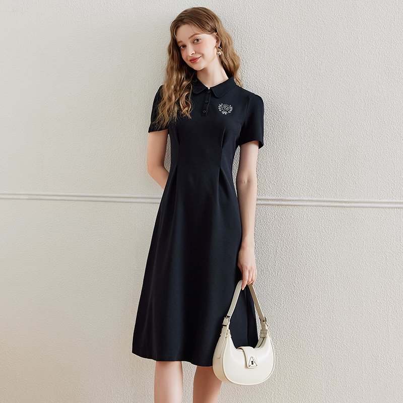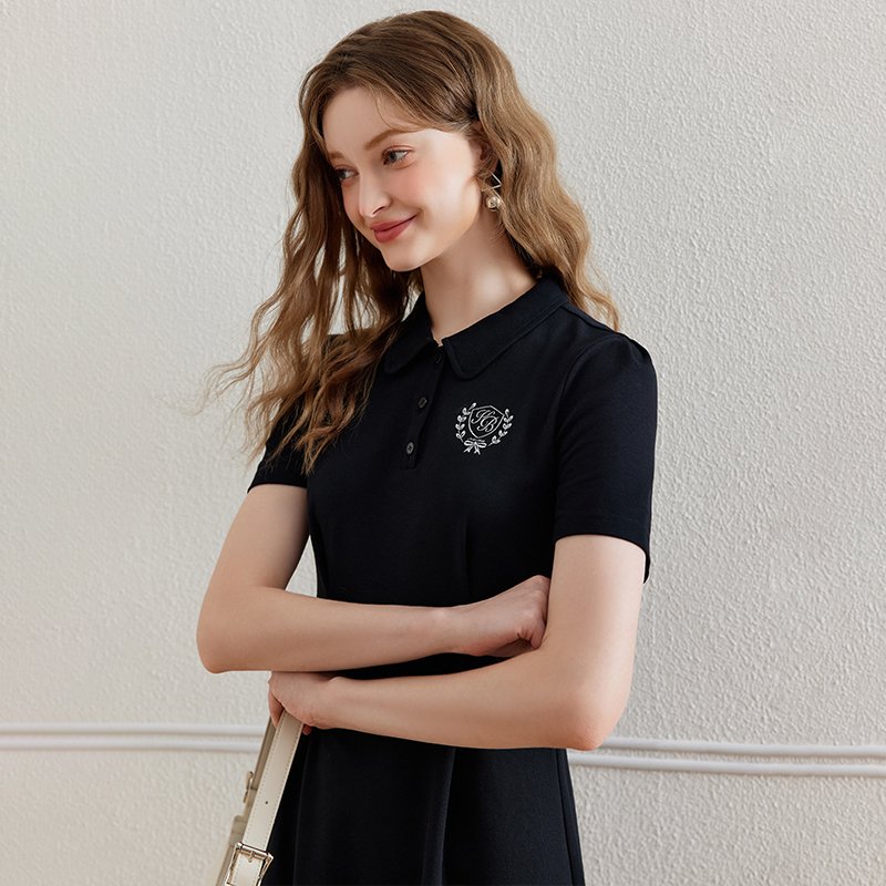 减龄学院感连衣裙活力在线 ,休闲时尚兼具大方简洁的翻领与学院徽标 ,释放休闲率性滋味,立体贴合的剪裁加上带有质感的面料 ,青春减龄,收腰合身的版型上身很xian瘦 ,下摆A字裙摆灵动优雅垂顺自然的裙摆 ,垂顺有型 简约美观