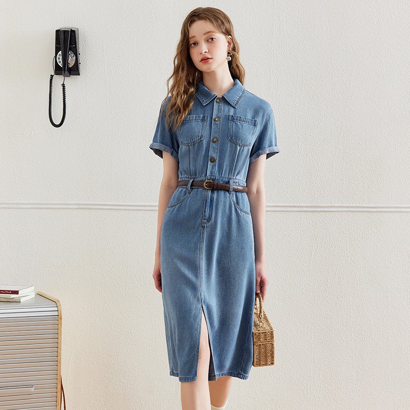 经典高峰牛仔甜酷牛仔连衣裙-牛仔的硬朗和裙装的柔美相融合 自带褪色做旧质感 复古潮流拉满 可搭配腰带 腰部更贴合身体曲线