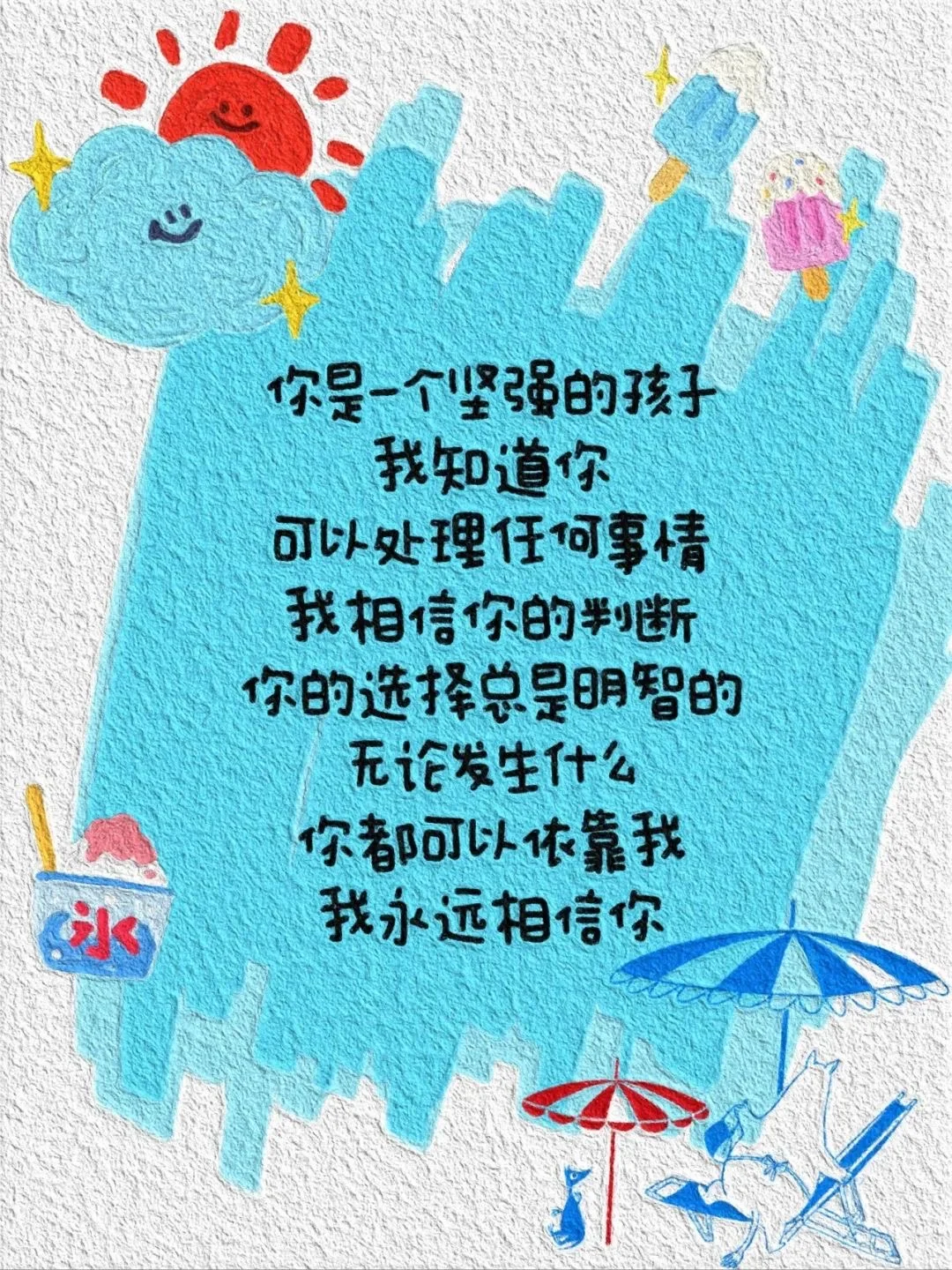 “你是一个坚强的孩子,我知道你可以处理任何事情。”