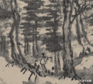 绕过那座大山后,在山的另一侧脚下,我们瞧见一位樵夫。他正挑着干柴走在山路上呢,其身旁林木繁茂,和那墨色的身影融合起来,仿若一体。
