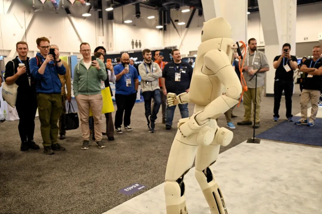 傅利叶新一代全尺寸人形机器人“Care-bot”GR-3是今年CES的一大焦点。这款全尺寸机器人集成视觉识别、声源定位和触感反馈的全感交互系统,具备强大的情绪响应能力。现场,“Care-bot”GR-3还带来了舞蹈表演、井字棋对弈以及拟人化交互等功能展示,吸引众多参展人驻足拍照。