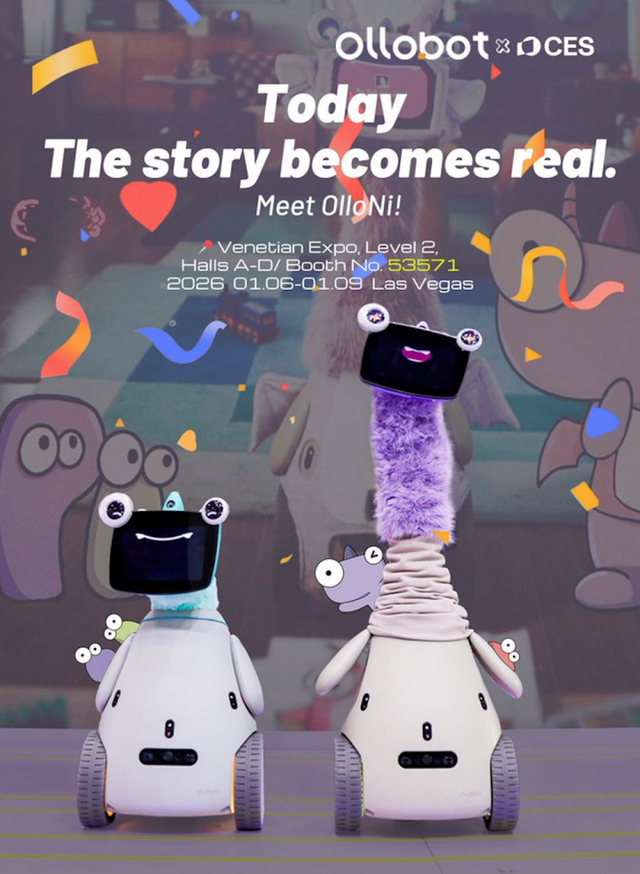 OLLOBOT是会畅科技旗下的AI陪伴机器人品牌。在CES上,OLLOBOT带来两款陪伴机器人。OlloNi核心能力包括多模态主动AI和智眸共情交互,如环境感知、情绪识别等,可一键交互并主动适配用户需求。此外,这款呆萌的机器人还可以存储用户习惯,让陪伴更有情感和温度。
